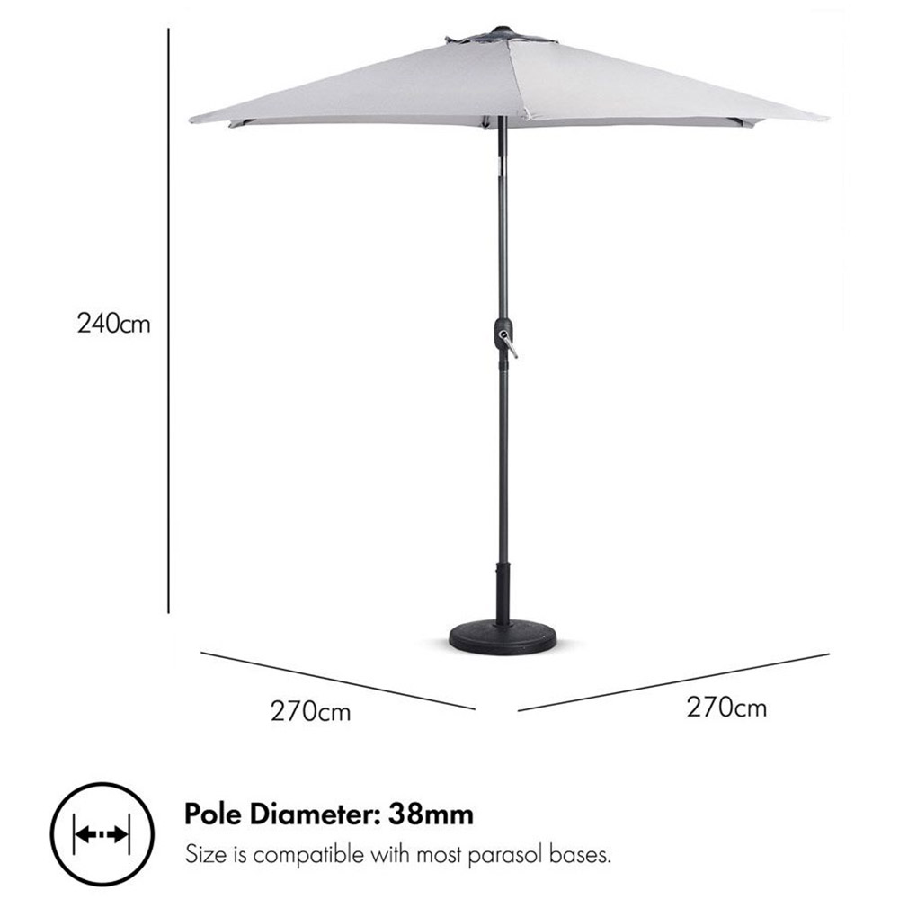 Stay cool and shaded all day long with the VonHaus Grey Steel Parasol. Its durable, powder-coated steel frame resists rust, and the two-section design allows for quick assembly and easy storage. Enjoy UV30+ sun protection under the large 2.7m canopy, easily adjustable with the tilting top. Dimensions: 267 x 240cm (Canopy diameter x Parasol height). Base sold separately. Protect your investment with our selection of parasol bases and covers.