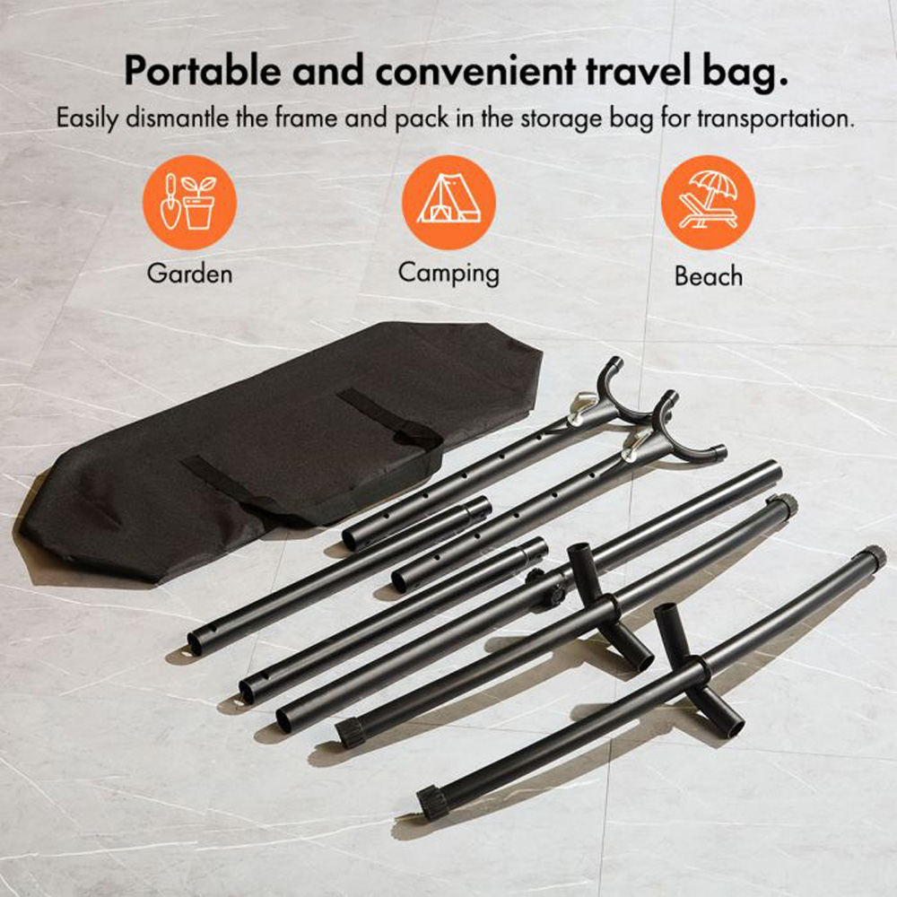Bring a vibrant splash of colour to your garden with the VonHaus Ibiza hammock with stand. The cheerful orange stripes offer a summery feel, while a handy storage pocket keeps your phone, book, or glasses within easy reach.