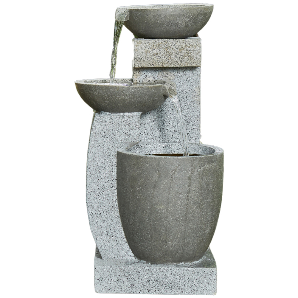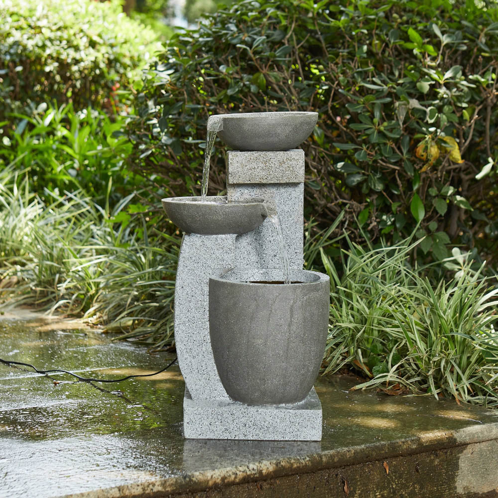 Introduce a sense of calm to your garden with the gorgeous Vossmoon Harmonia 3 Tier LED Cascade Garden Water Fountain. The sophisticated tiered cascade design allows water to flow effortlessly into the contemporary bowls, creating a tranquil and elegant water feature. Water gently cascades from one level to the next, creating a serene atmosphere. The modern bowls add a stylish touch, blending contemporary design with the natural beauty of flowing water. Complete with a built-in LED light, simply add water, plug it in, and enjoy this stunning fountain.