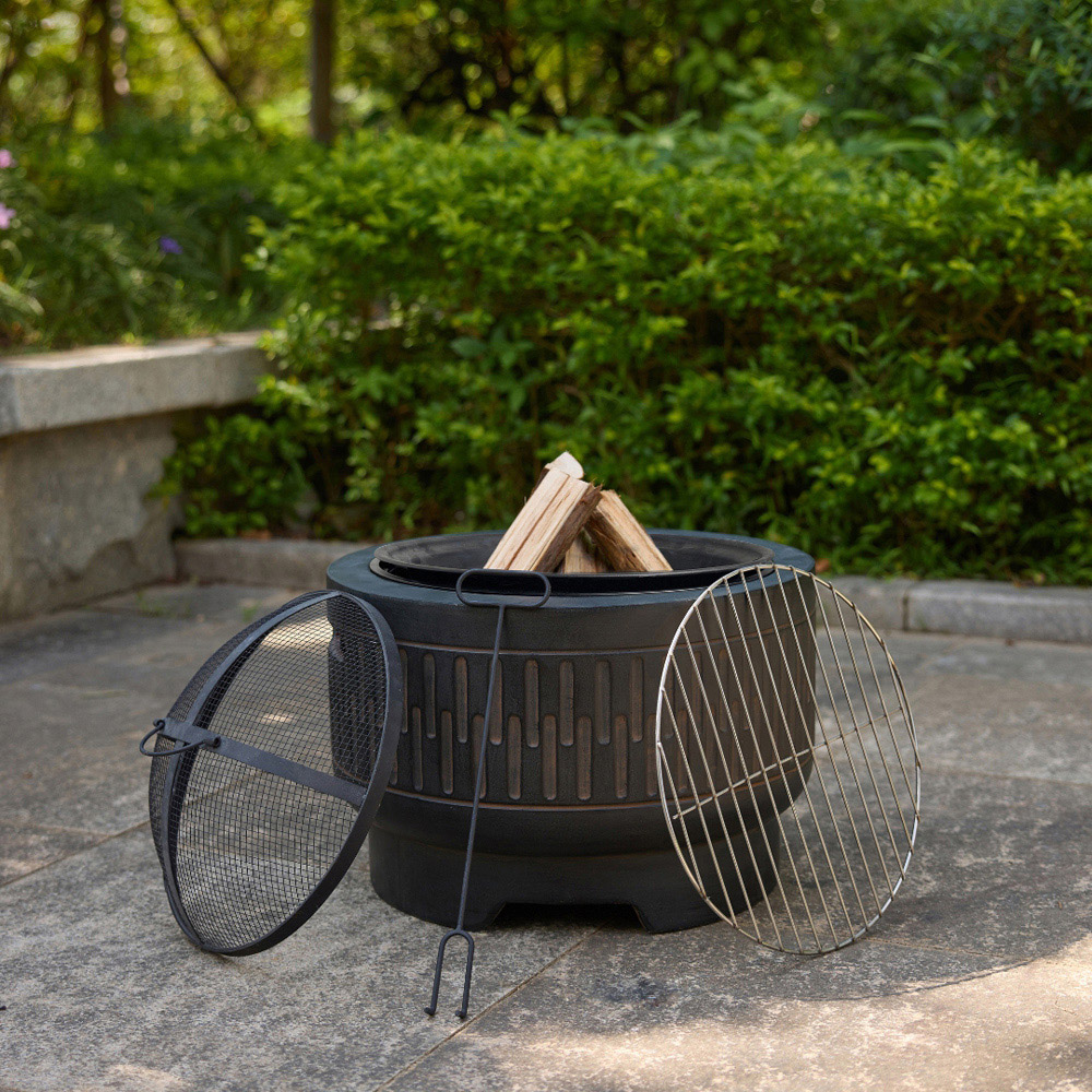 The Vossmoon Morbarrel Outdoor Fire Pit transforms your outdoor space. Crafted from durable yet lightweight materials, this fire pit is easily positioned and maintained, retaining its contemporary style. Enjoy the versatility of heating and grilling, while the metal mesh spark cover ensures safety. The set includes a stainless steel grill, a protective metal mesh cover, a poker, and a rain cover. Lightweight and safe, it',s effortlessly moved to your ideal location.