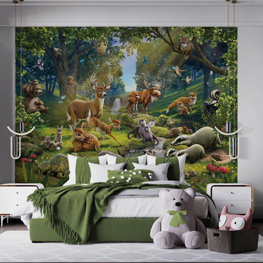 Transform your space with this enchanting forest animal mural! Discover over 20 adorable woodland creatures in this delightful wall covering, perfect for adding a touch of nature to any room. Measuring up to 8 x 10ft (243.84cm x 304.80cm), this mural arrives in convenient panels for easy application and comes beautifully packaged in a gift box. Application is simple: use a paste-the-wall method, applying paste evenly to the back of each panel, allowing a 1-2 minute soak time before applying to the wall with a soft cloth. Remember to overlap edges by about 6mm and trim excess once dry for a professional finish.