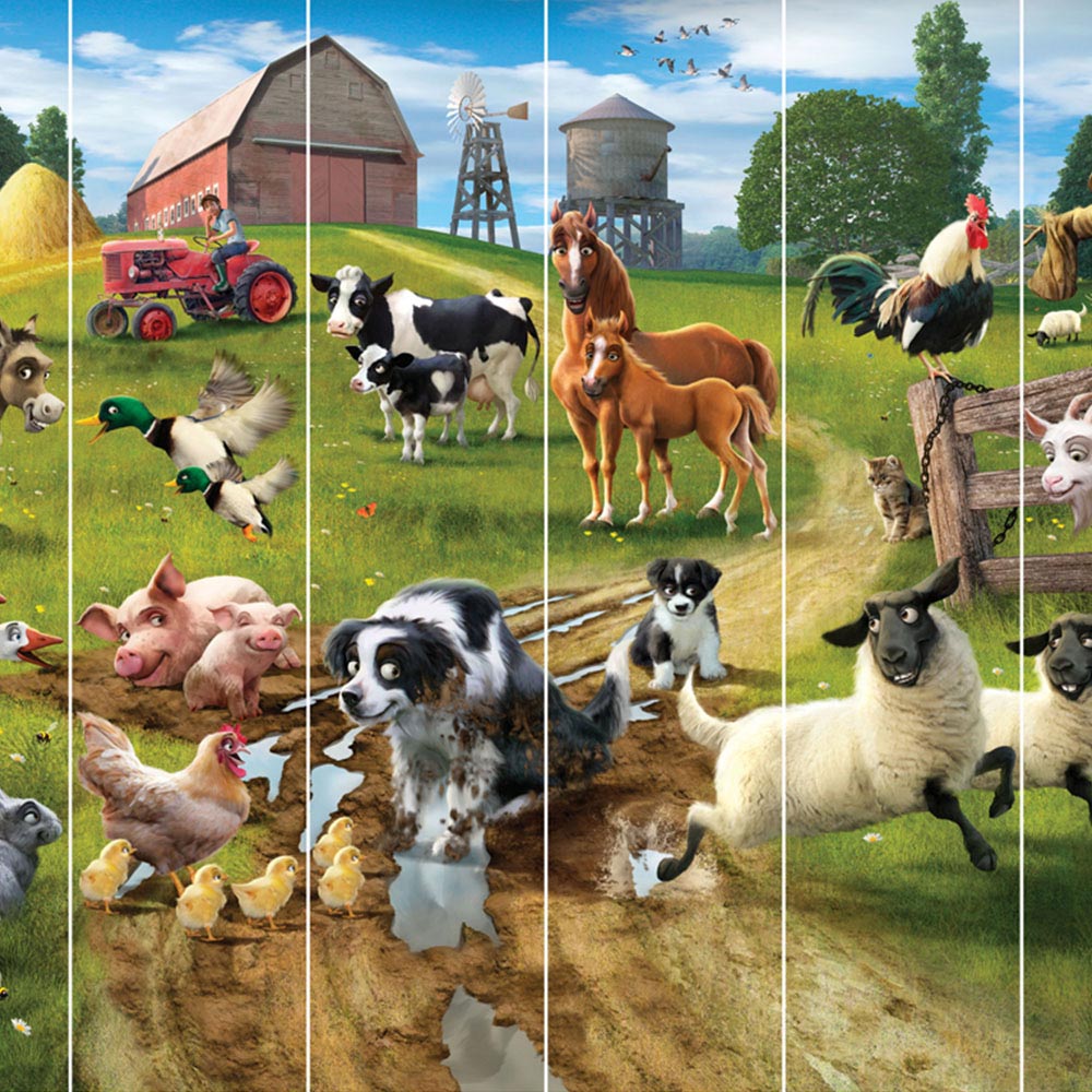 Transform your child's space into a delightful farmyard adventure with the Walltastic Farmyard Fun Wall Mural. This mural covers an impressive area of up to 8ft x 10ft (243.84cm x 304.80cm) and is designed in easy-to-apply panels, allowing for flexible coverage tailored to your wall. Each mural arrives beautifully rolled in a gift box, reminiscent of traditional wallpaper. Featuring over 14 charming animals, including playful chickens, ducks, cows, and pigs, this vibrant design is sure to captivate any little boy or girl. The engaging scene invites exploration and identification, making it a perfect addition to a nursery or playroom. Application is simple with the paste-the-paper method. Start by selecting the first panel and laying it face down. Evenly apply wallpaper paste to the back and allow it to soak for 1-2 minutes before placing it on the wall using a soft cloth. Repeat these steps for the remaining panels, ensuring to overlap the edges by approximately 6mm to keep seams hidden. Once dry, carefully trim any excess edges for a polished finish. Elevate your home decor with this enchanting mural that brings the joy of the farm right into your living space.