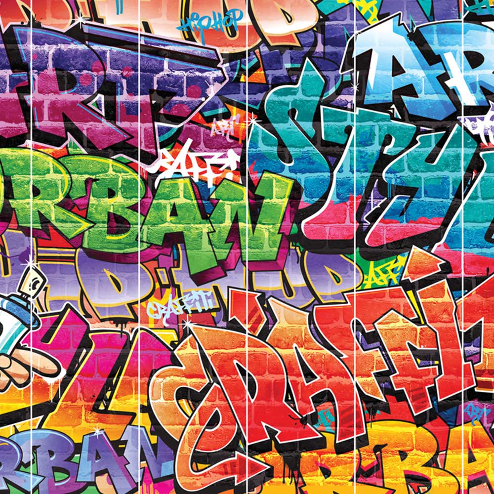 Elevate your space with the striking Graffiti Wall Mural from Walltastic. This dynamic wallpaper adds an impressive wow factor to any room, instantly transforming it into an artistic haven. Designed in manageable panels, it offers flexibility to cover as much or as little wall space as you desire, all beautifully packaged in a gift box similar to traditional wallpaper rolls. Covering an expansive area of up to 8 x 10ft (243.84cm x 304.80cm), installation is a breeze with the included step-by-step guide. Simply paste the paper for a seamless application: start by selecting the first panel, laying it face down on a flat surface, and applying wallpaper paste evenly to the back. Allow the paste to soak for 1-2 minutes before carefully positioning the panel on the wall with a soft cloth. Continue this process for the remaining panels, ensuring to overlap the joining edges by approximately 6mm to conceal seams after drying. Trim any excess edges with care once the mural is set. Transform your room into a vibrant work of art with ease.