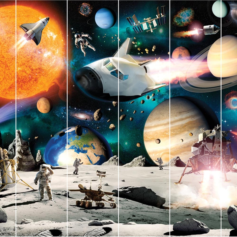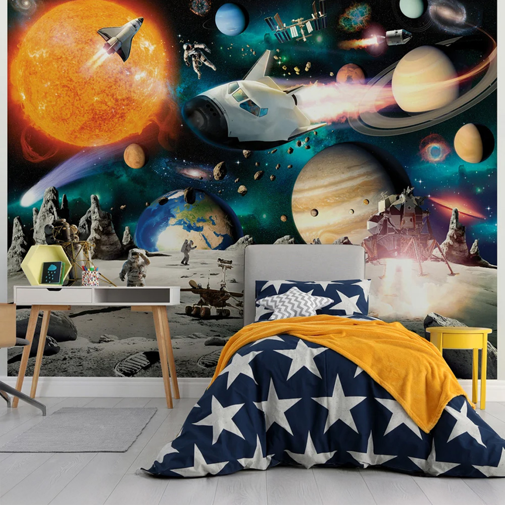 Embark on an intergalactic journey with the Space Adventure Wall Mural. Transform your room into a cosmic wonderland, perfect for any aspiring astronaut! This captivating wall covering measures up to 8ft x 10ft (243.84cm x 304.80cm). The easy-to-apply design comes in manageable panels, offering flexibility for various wall sizes. The mural arrives in a gift-ready box, rolled like wallpaper for simple application. Step-by-step instructions ensure a seamless installation. Use the paste-the-paper method: apply paste evenly to each panel, let it soak for 1-2 minutes (avoid overlapping pasted sheets), then apply to the wall using a soft cloth. Overlap panels by 6mm to prevent seams from showing after drying, trim excess once dry.