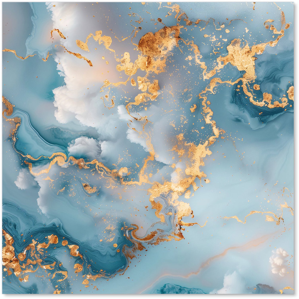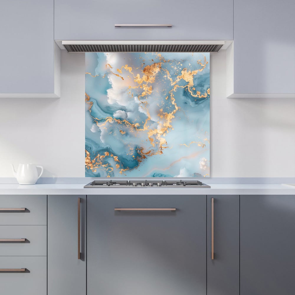 Warren Reed Designer Blue And Gold Marble Effect Glass Kitchen Splashback 60 x 60cm