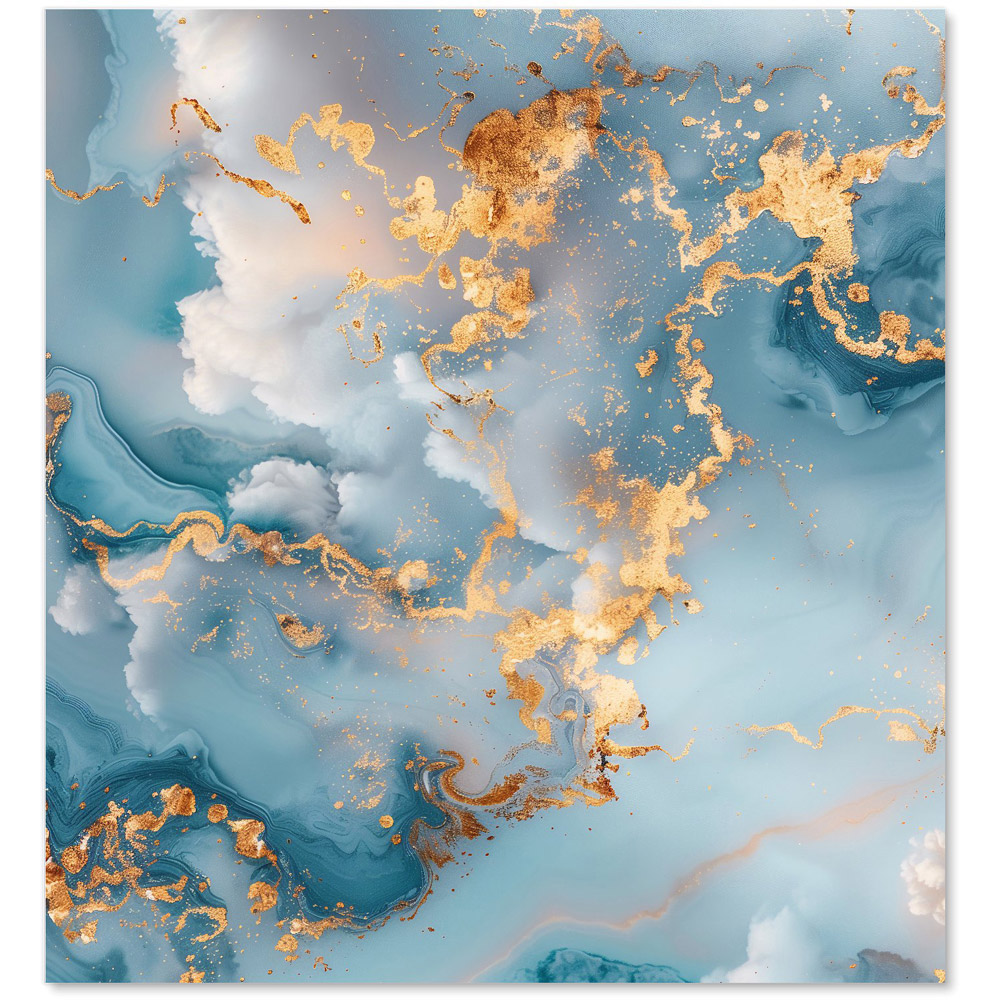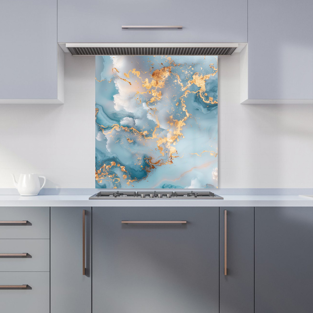 Warren Reed Designer Blue And Gold Marble Effect Glass Kitchen Splashback 65 x 60cm