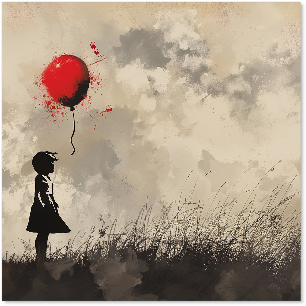 Warren Reed Designer Dreamy Banksy Inspired Girl With Red Balloon Glass Kitchen Splashback 60 x 60cm