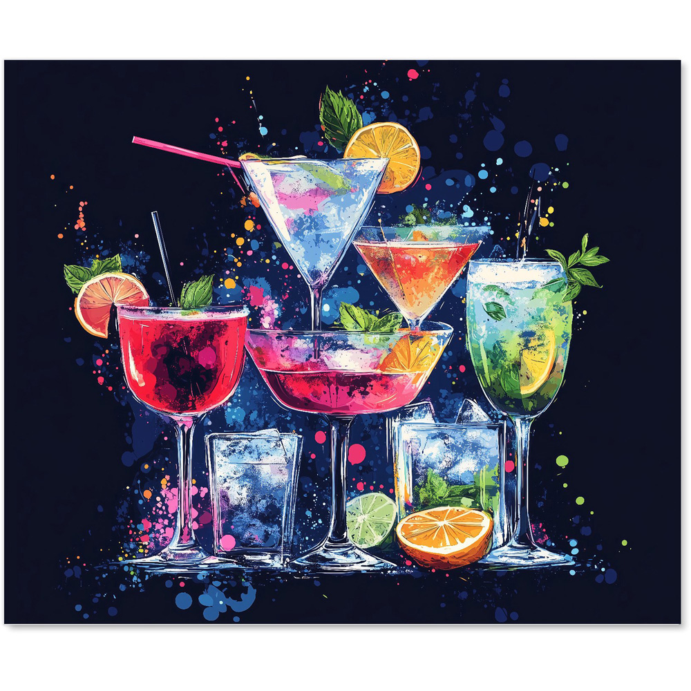 Warren Reed Designer Nighttime Cocktail Splash Glass Kitchen Splashback 75 x 90cm