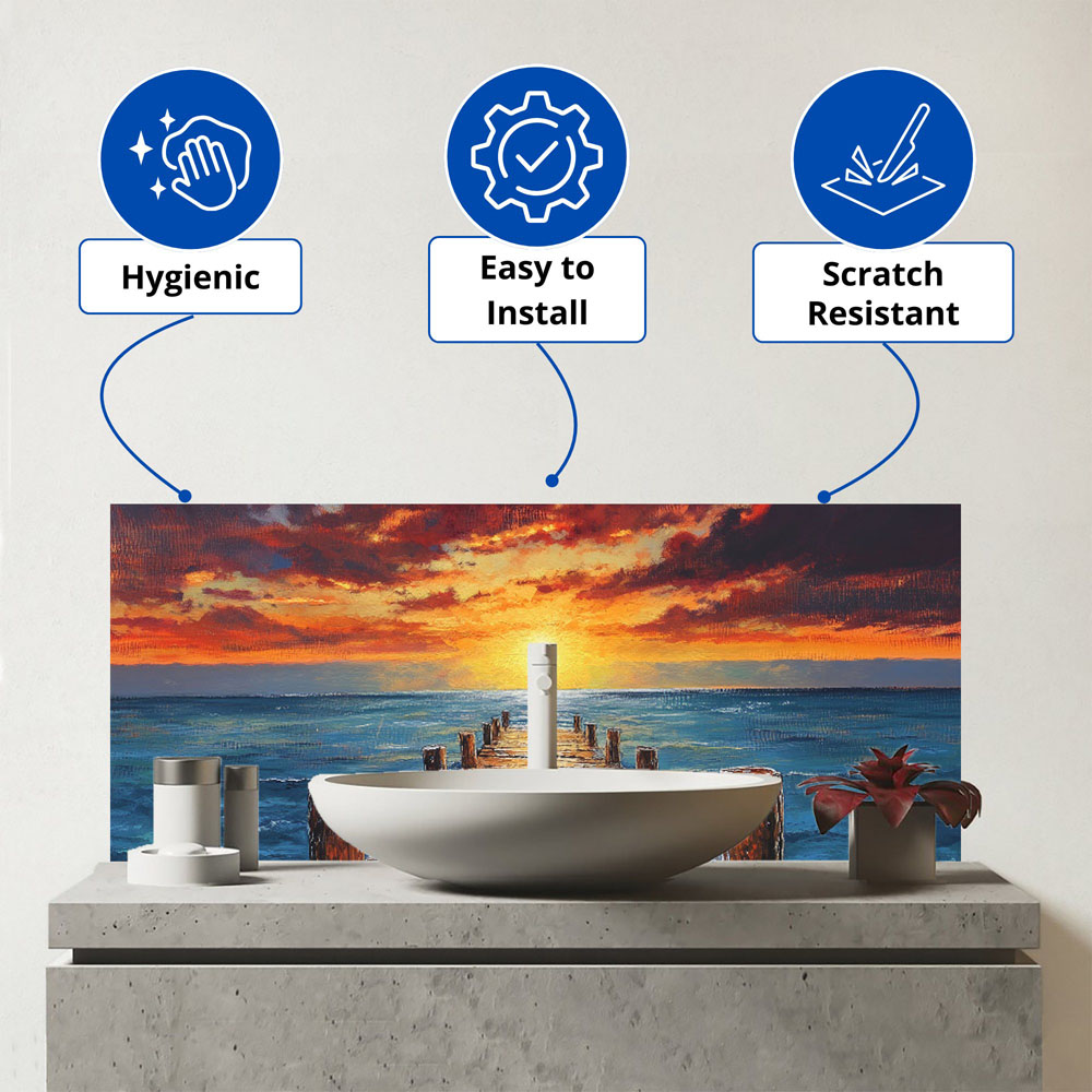With a focus on sophisticated design for modern bathrooms, the Warren Reed glass splashback offers a seamless blend of style and practicality. Constructed from durable 6mm toughened glass, it features a high-quality print that brings an elegant touch to any bathroom. Specifically designed to withstand the humid environment, this splashback is resistant to moisture, mould, stains, and water, providing a hygienic and low-maintenance solution compared to traditional tiling, with no grout required. Installation is straightforward, with full instructions included, and requires no drilling, ensuring a sleek and stylish backdrop for your basin.