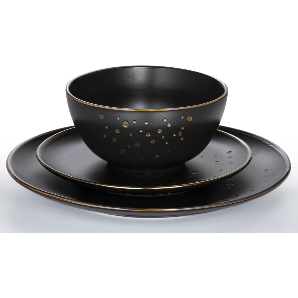 Waterside Ebony and Gold Dinner Set 12 Piece