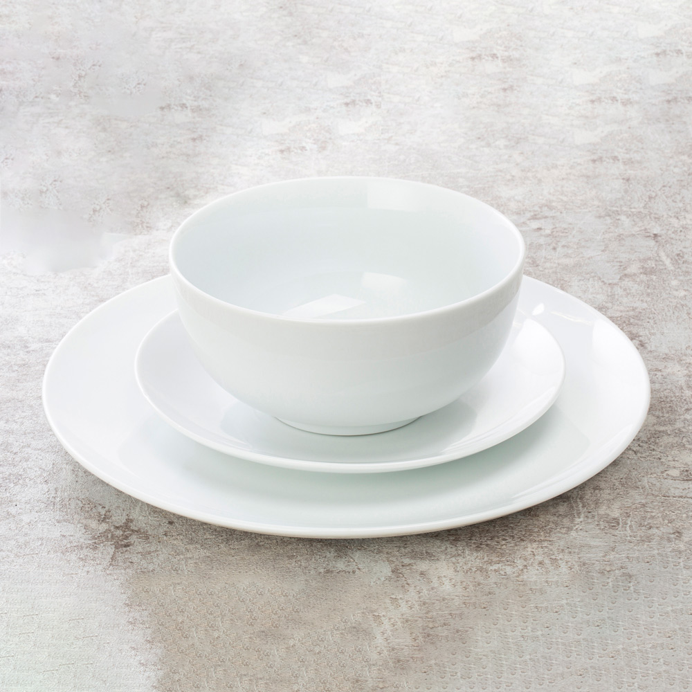 Serve up style at every meal with the Waterside Vermont White 18-Piece Dinner Set. This classy white dinner service offers ample space for your culinary creations, creating a simple yet attractive dining experience. Great for everyday use, this set is both dishwasher and microwave-safe, making it a practical choice. The set includes six 10.5-inch dinner plates, six 7.5-inch side plates, and six 5.5-inch deep bowls – a complete collection for your dining needs.