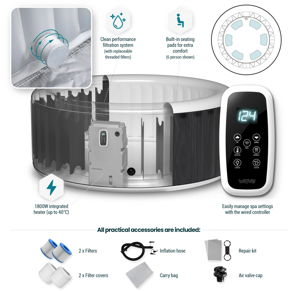 Wave Atlantic 6 Person Grey Rattan Inflatable Hot Tub