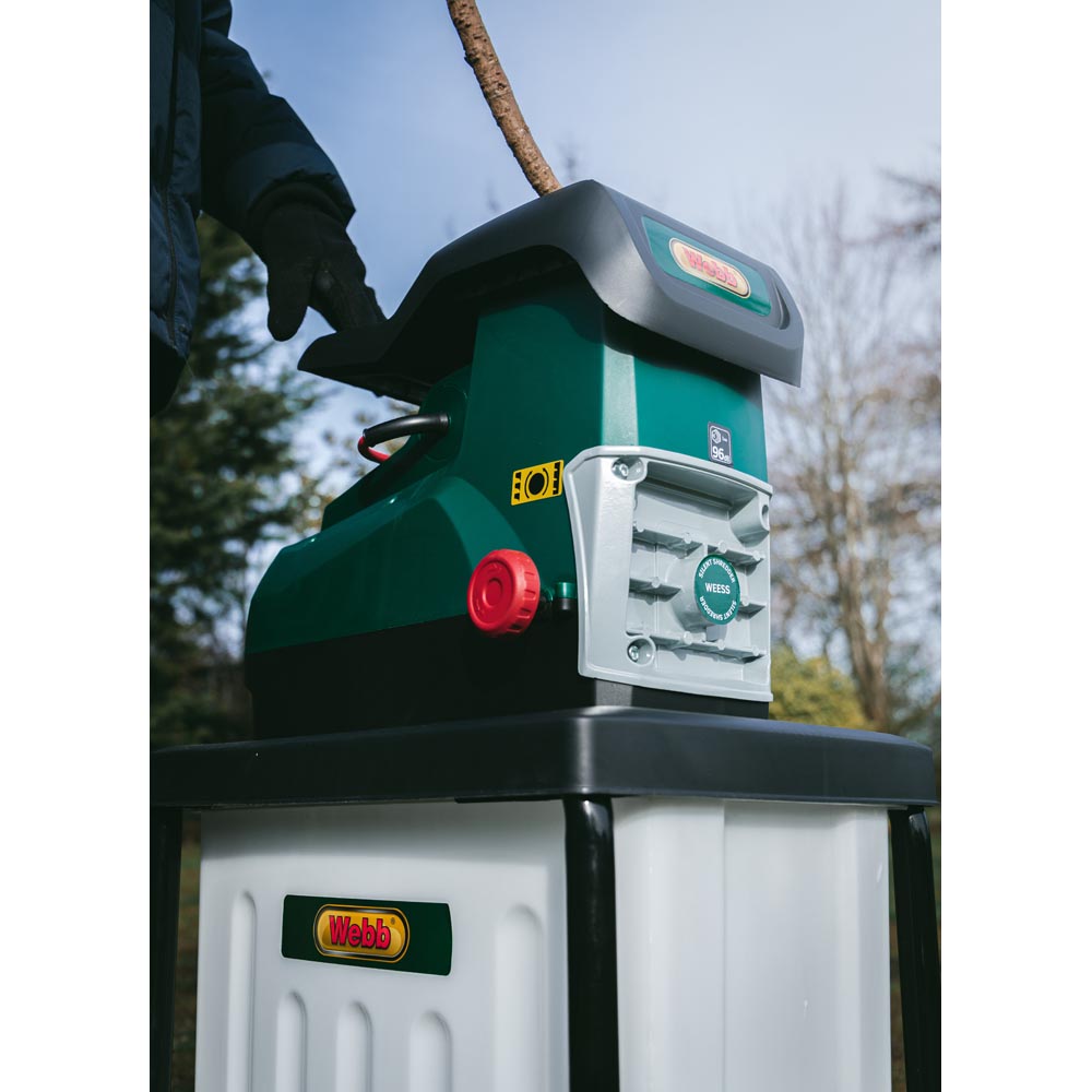 Transform your garden waste into manageable chippings with the Webb 2800W Electric Silent Shredder, complete with a handy collection box. This efficient machine reduces the volume of small branches and garden debris by an impressive 10:1 ratio. Operation is straightforward—simply press the button to activate and feed twigs, cuttings, and leaves into the hopper, where they are expertly drawn into the high-speed blades for crushing. With eight sharp steel blades rotating at 47 times per second, this shredder easily handles cuttings of up to 45mm in diameter. Designed for user convenience, the silent shredder features transport wheels for easy movement from your shed or garage to any spot in the garden. Safety is a top priority, the shredder will only operate when the collector box is securely attached, and a safety switch prevents accidental shredding when unattended, providing you with peace of mind. Specifications include a weight of 27kg, dimensions of 58.5 x 48 x 91 cm, a 10m cable length, a collection capacity of 55 litres, and a powerful corded electric rating of 2800 watts. It also comes with a three-year warranty, ensuring your investment is protected.