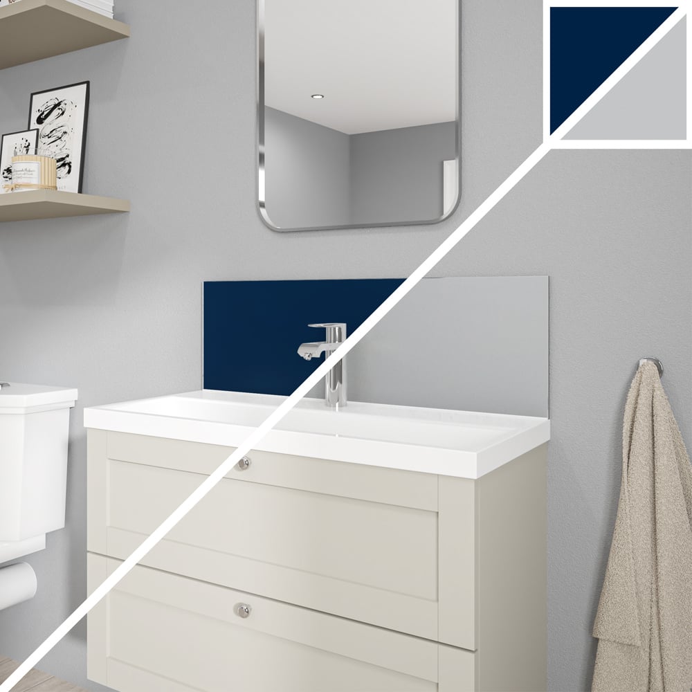 Elevate your bathroom's aesthetic with this double-sided splashback in a striking Atlantic/Urban Grey gloss finish. Part of the Wetwall Alloy Colour Range, this splashback offers a stylish and practical solution.
