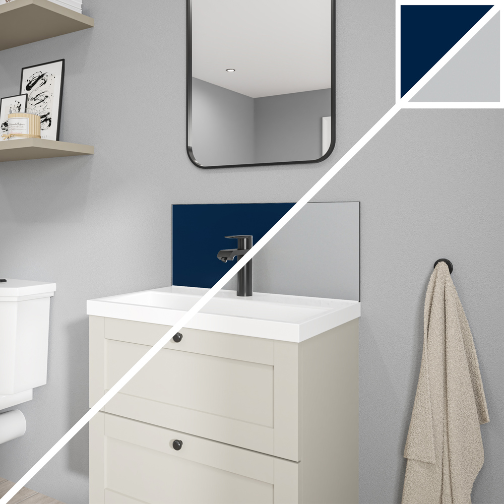 Elevate your bathroom's aesthetic with this double-sided splashback in a striking Atlantic/Urban Grey gloss finish. Part of the Wetwall Alloy Colour Range, its rich colours add a touch of sophistication.