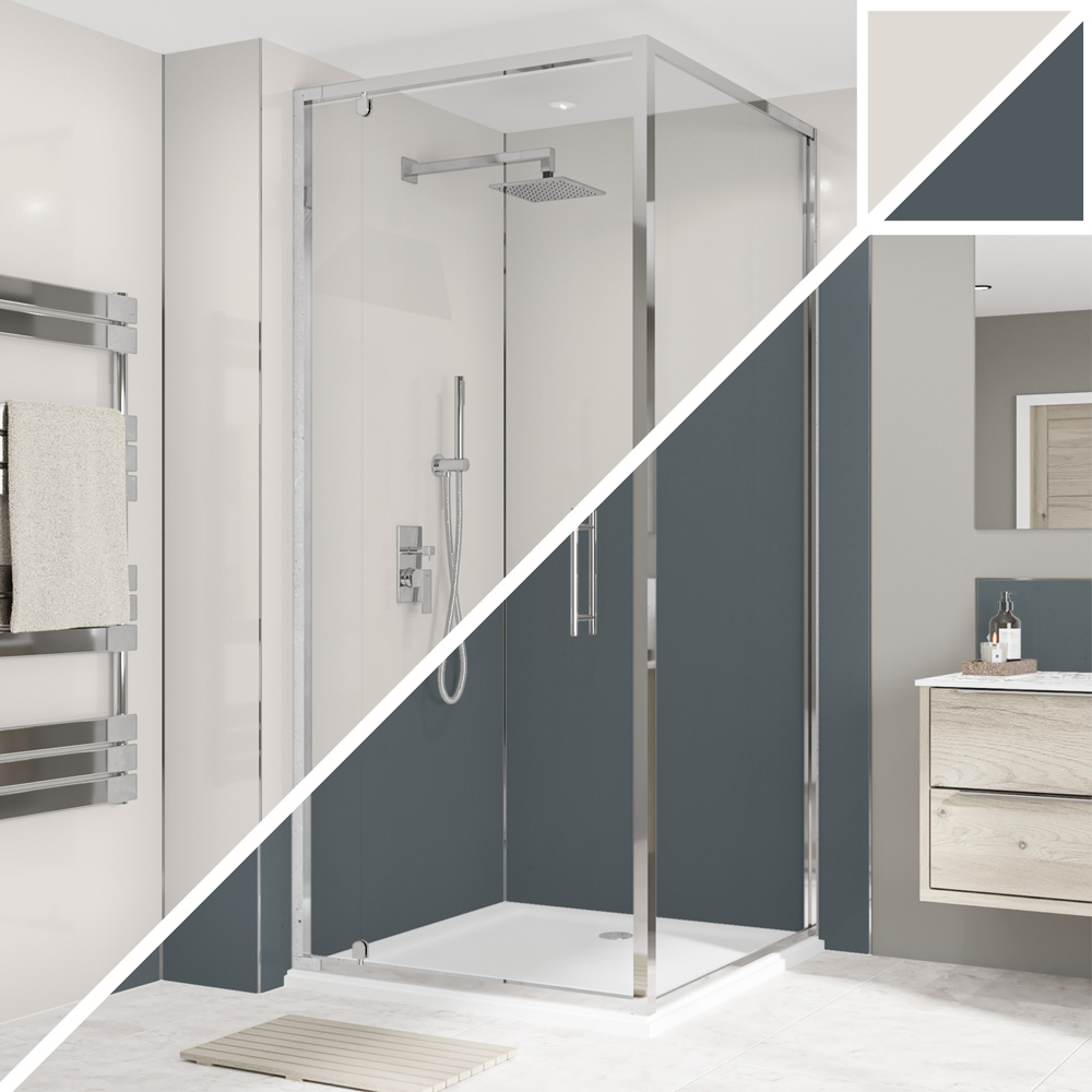 Wetwall Alloy Malibu Grey and Storm Blue Double Sided Shower Wall Panel 2440 x 1220mm