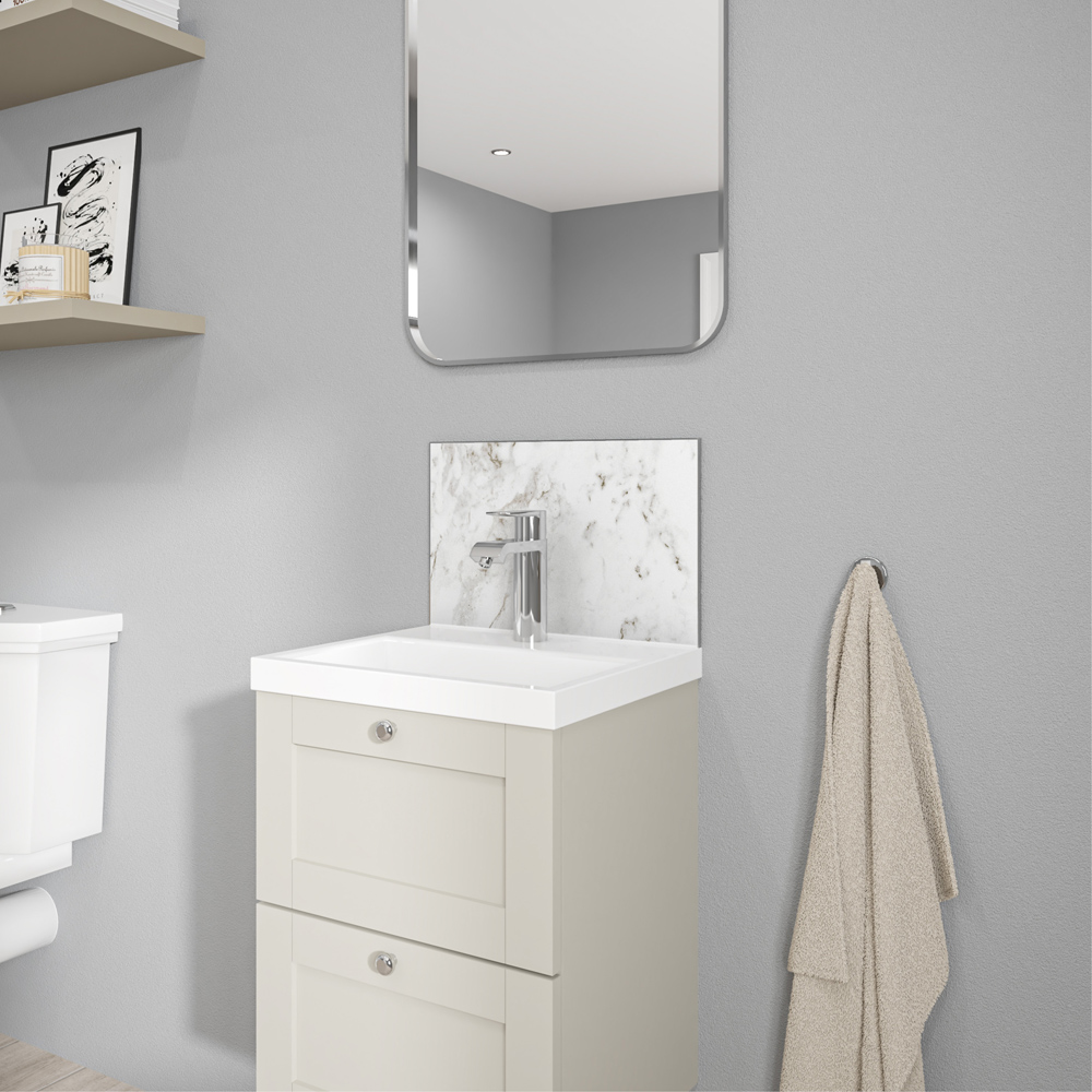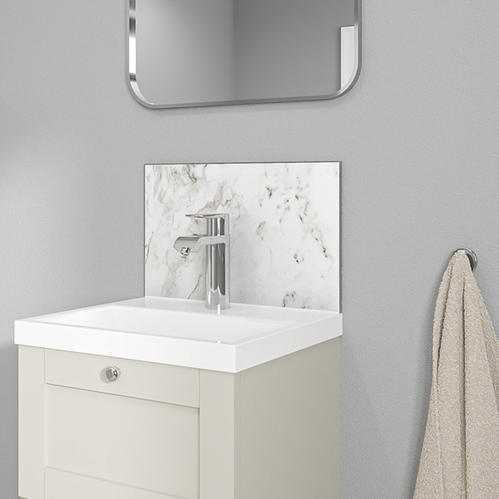 This Roman Marble splashback, with its subtly veined white and light grey design, offers a touch of luxurious calm to your bathroom. A practical and stylish alternative to natural stone, its elegant pattern complements both classic and contemporary styles, perfectly suited to bathrooms. Easy to install and grout-free, it provides a convenient alternative to tiles and mosaics.