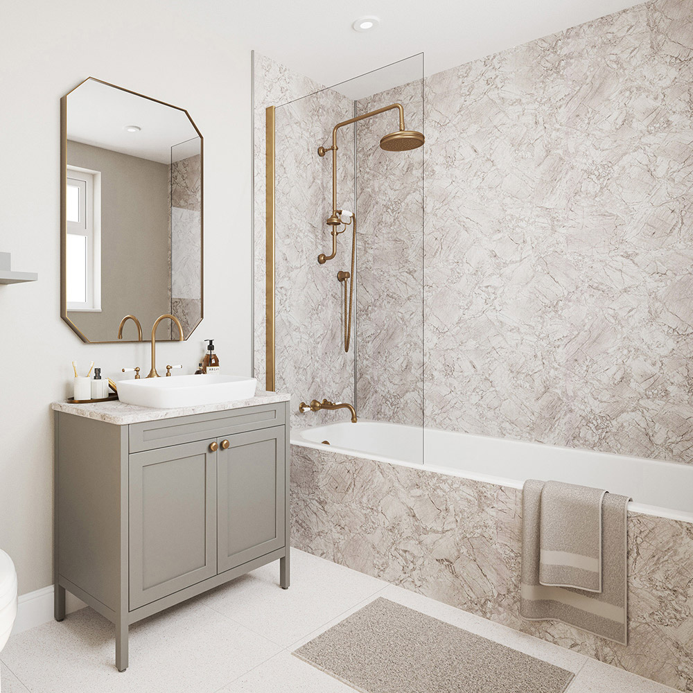 Wetwall Mermaid Tongue and Groove Bianco Marble Plywood Shower Wall Panel 2420 x 880mm