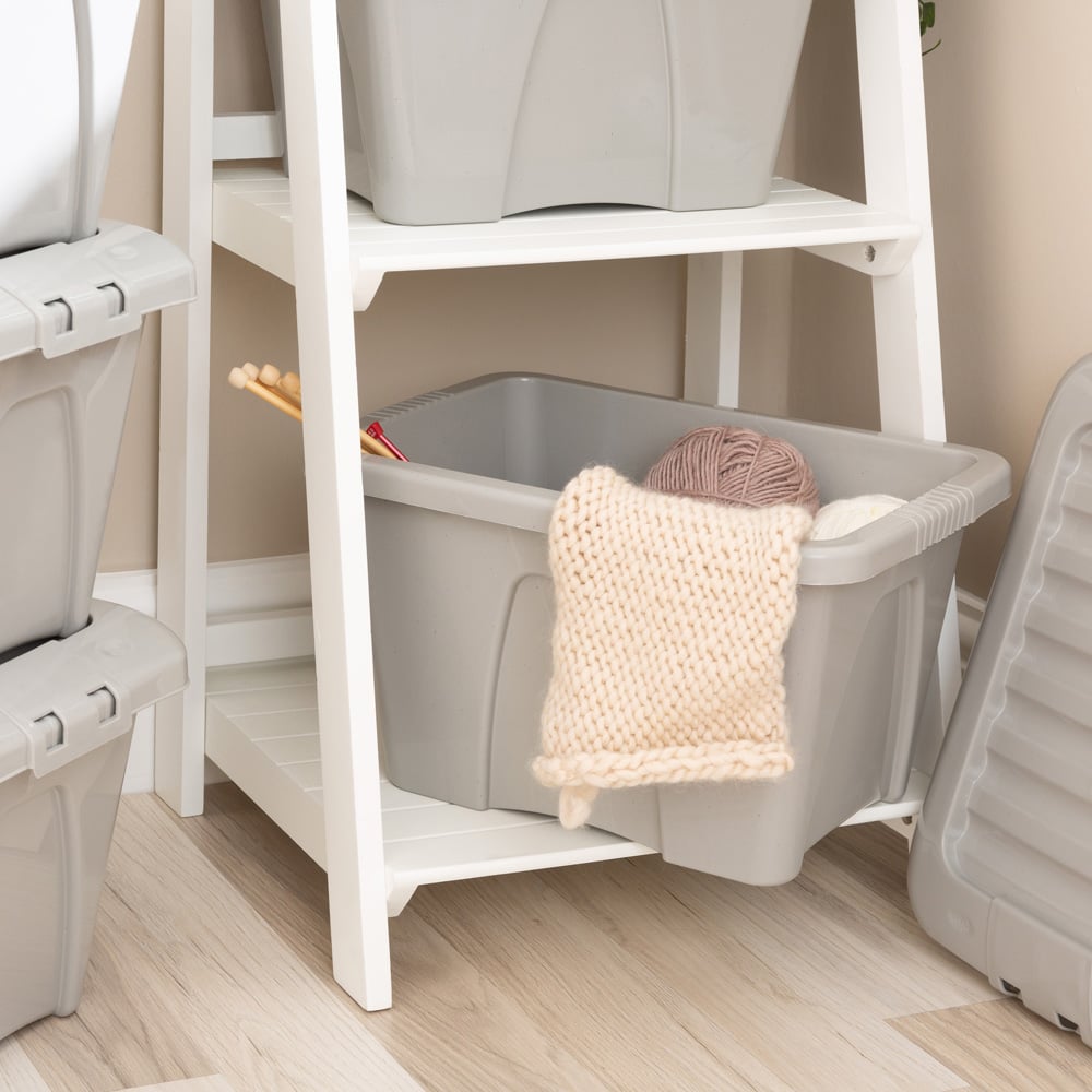 This versatile 14L soft grey storage box set is perfect for tidying up any space. Ideal for homes, offices, and schools, the set includes five 14-liter boxes with convenient clip-on lids. The sleek design and contemporary aesthetic will seamlessly integrate into any décor, helping to maintain a clutter-free environment. Made from 100% recyclable material, these boxes are both practical and environmentally conscious. Size: 14 litres.
