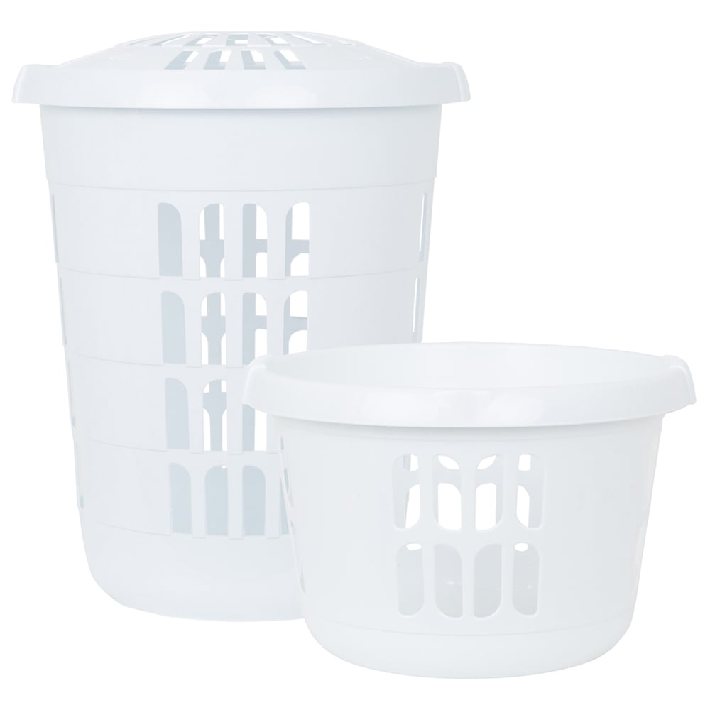 Wham 2 Piece Casa Plastic Laundry Basket & Hamper Set Ice White