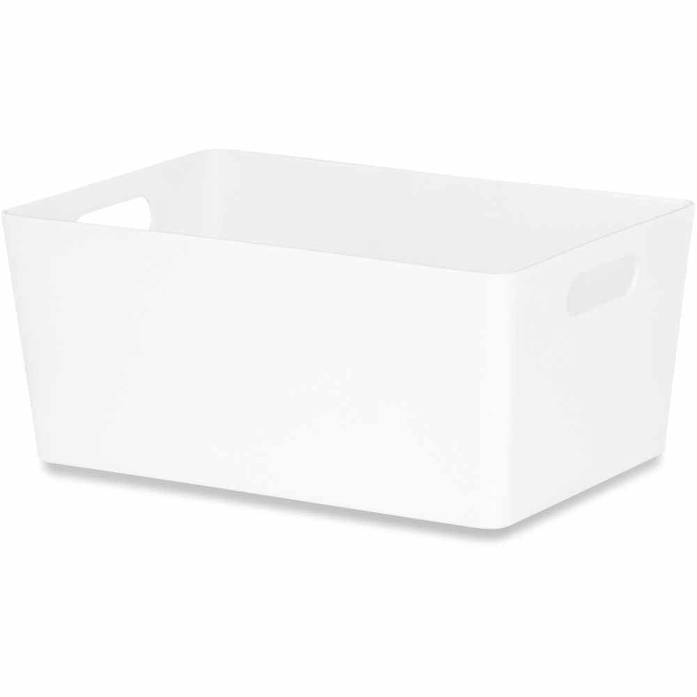Tidy up your space with the Wham White 4.02 Storage Studio Basket 3.9L. With a sleek, high-gloss finish and compact size, it’s ideal for storing bathroom essentials, stationery, or daily accessories. Built-in handles offer easy portability, and the wipe-clean surface makes it a practical choice for any room.