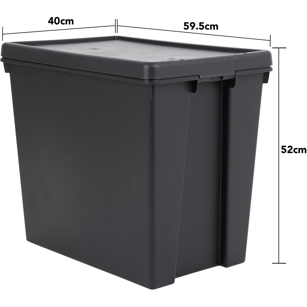 Keep your spaces tidy with the Wham Bam 92L Black Box and Lid Set. Two robust boxes, each holding a generous 92 litres, make light work of storage. Detachable lids allow easy access while keeping contents safe and secure. Ideal for homes, schools, or offices, these versatile boxes offer a simple solution to clutter. Dimensions: H59.5cm x W40cm x D52cm.