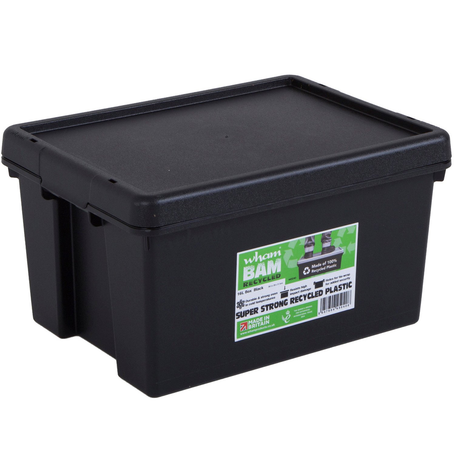 From home to the garage, or anywhere in between, the Recycled Black Storage Box with Lid is perfect for keeping your important items and desirables stored securely. Its durable, snap-secure lid and weather-resistant design protect contents from the elements, while impact-resistant recycled plastic construction ensures your items stay secure, even in colder outdoor conditions. A flat bottom provides stability, and tie-wrap holes offer added security. Keep your space clutter-free and your possessions protected.