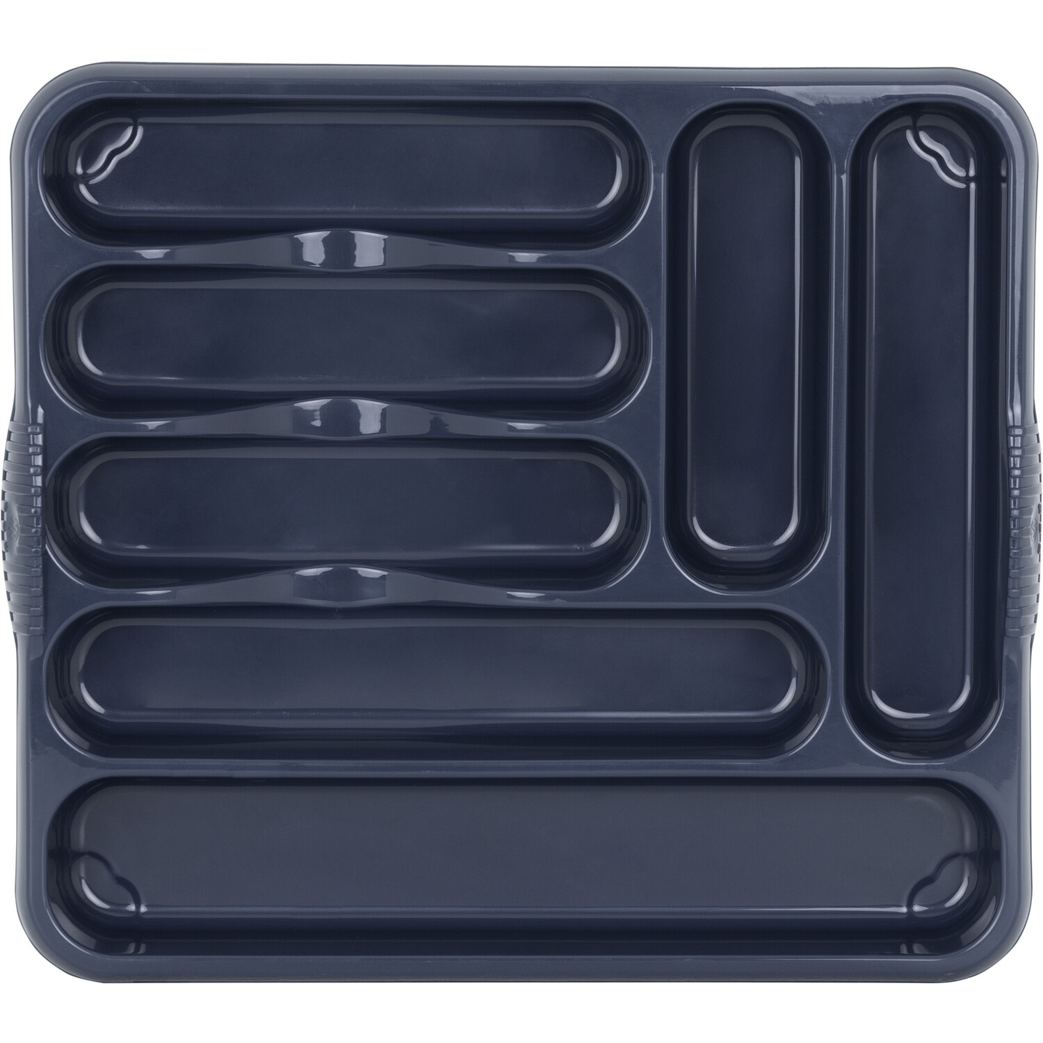 Declutter your drawers with this Casa Large Cutlery Tray from Wham, designed to bring order to your cutlery and utensils. Featuring seven compartments, this navy blue tray is an ideal fit for any standard drawer. Grip handles allow for easy movement, whilst the colour ensures it will seamlessly blend with your kitchen decor.