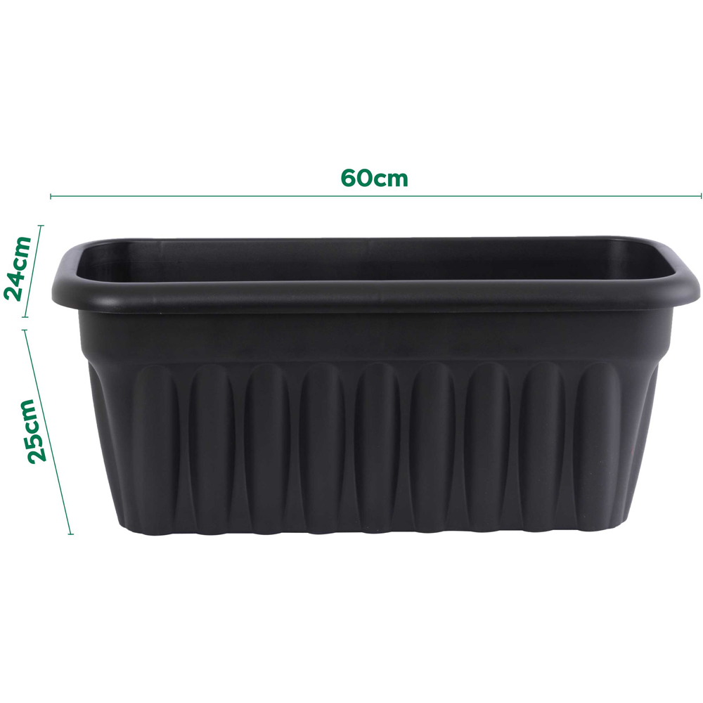 Introduce a touch of elegance to your home or garden with the Vista 60cm Trough planters. This set of two, finished in a sophisticated Slate colour, provides a stylish accent for any indoor or outdoor area. Proudly made in the UK from 100% recyclable materials, these troughs are an environmentally conscious choice for your gardening needs. Their lightweight yet weather-resistant design ensures they are durable and easy to move, making them a versatile choice for any garden or patio. The subtle colour variations inherent in the recycled material give each planter a unique, individual character.