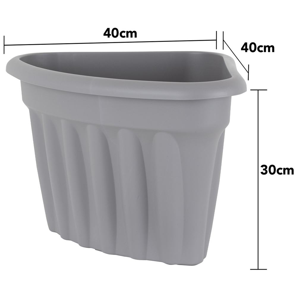 Enhance your garden',s aesthetic with the Wham Vista Upcycle Grey Recycled Plastic Corner Planter (40cm). Lightweight and weather-resistant, this set of four corner planters is perfect for indoor or outdoor use, each holding approximately 20 liters. Please note that colour may vary slightly due to the recycled materials.