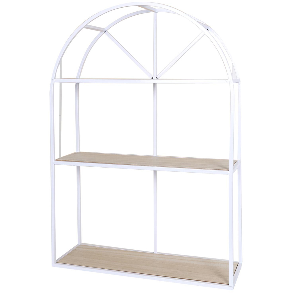 Maximize your wall space and add a touch of elegance with this White Metal Arch Shelf Unit. Its contemporary yet classic arch design and white and wood colour scheme makes it suitable for country-inspired homes. Ideal for showcasing cherished photo frames, ornaments, and other treasured trinkets, this ready-to-hang unit offers both stylish storage and convenient organization.