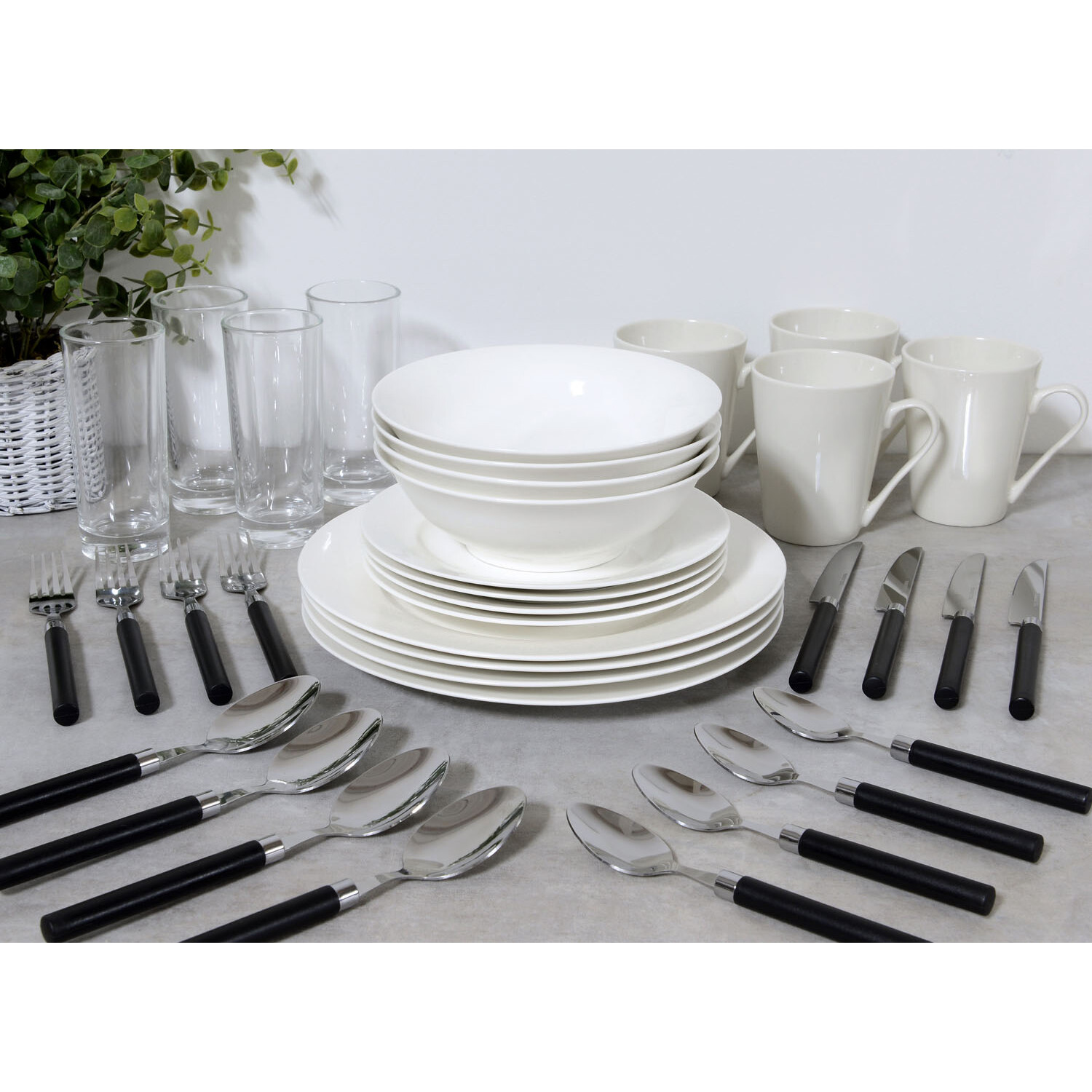 Moving into a new place or struggling to choose dinnerware? This 36-Piece Starter Set is a great choice, taking out all the indecision. Perfect for smaller families or couples, it includes four sets of cutlery, plates, and glasses – all the essentials you need in one handy package. The stylish, classic design features clean lines and a traditional white finish on the crockery. Plus, the cutlery's easy-to-hold handles make it a practical must-have for any home.