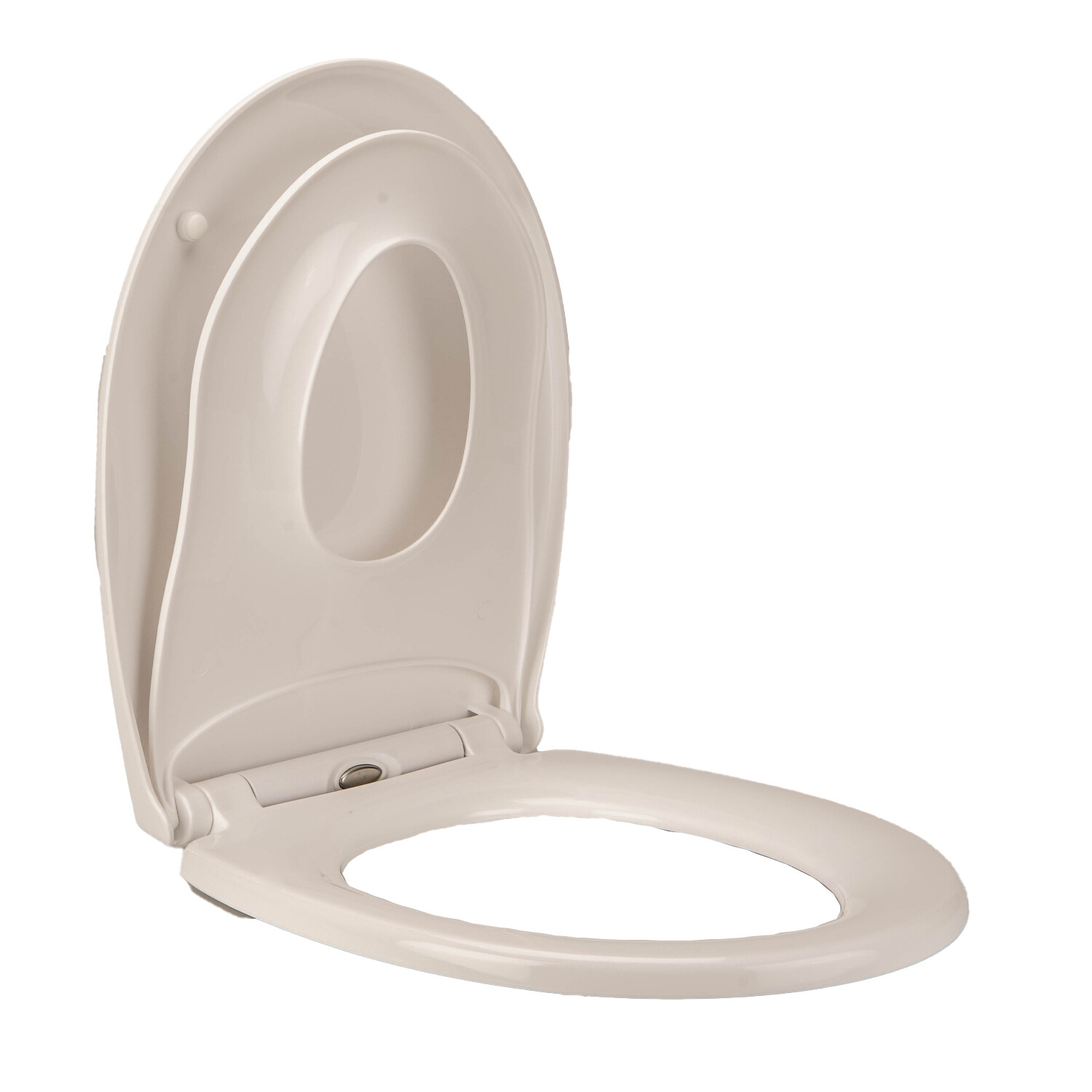Designed for the whole family, this toilet seat offers practicality and style. A removable child seat with a quick-release mechanism ensures easy cleaning and caters to little ones, while the slow-close lid provides safety for all ages. Its simple, pure white finish complements any bathroom décor, and its standard fit makes installation easy. A perfect blend of functionality and appealing design for the modern home.