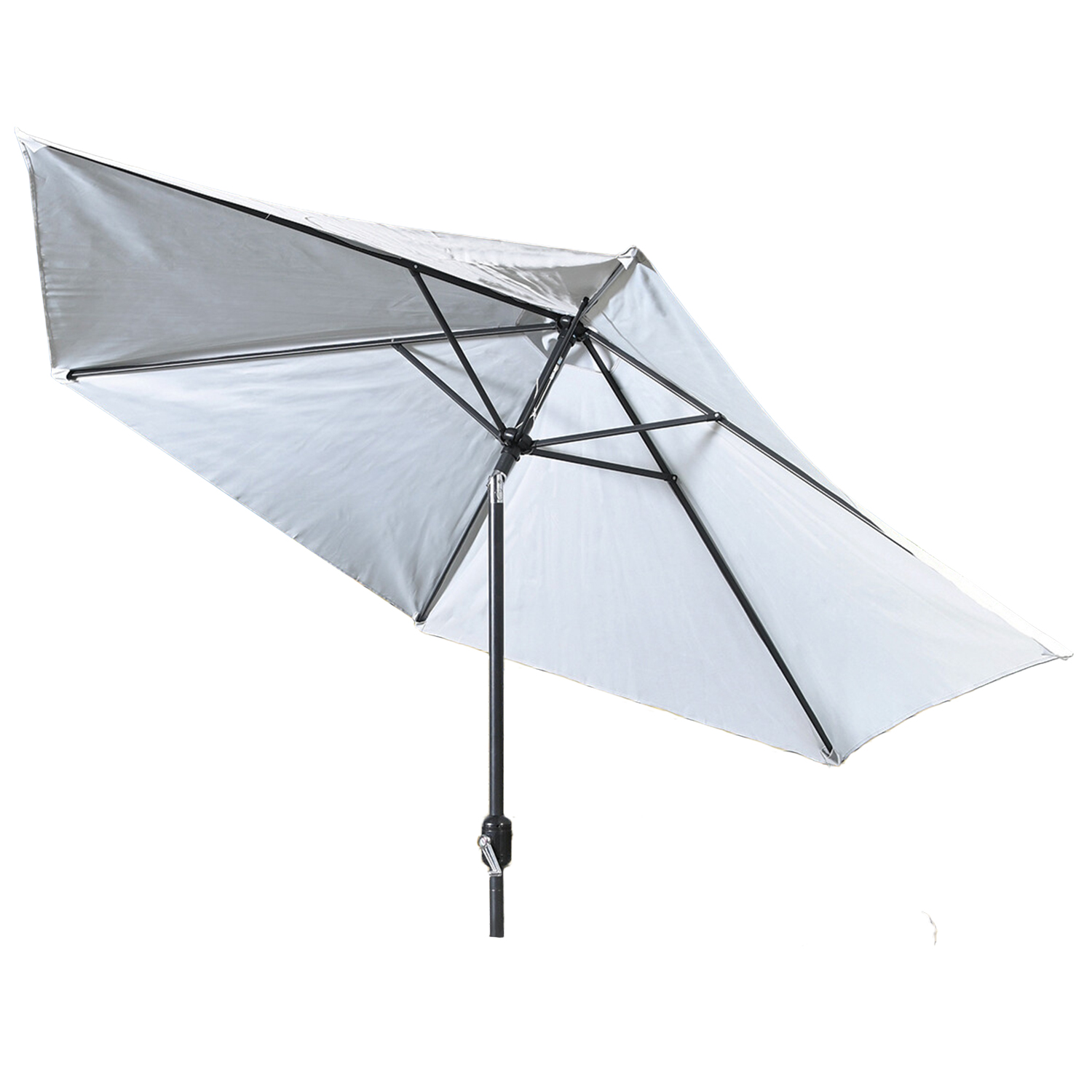 Create a shaded spot in your sunny garden with the Wild Dove Crank and Tilt Parasol 2.7m. Featuring a muted grey colour, this parasol complements various decors effortlessly. It features a crank and tilt function that lets you adjust it to your preference and effectively block the hot sun rays. Its 3m diameter makes it ideal for small to medium patio furniture sets, allowing you to enjoy outdoor brunches whilst staying protected from the sun and light rain. Note: Base not included.