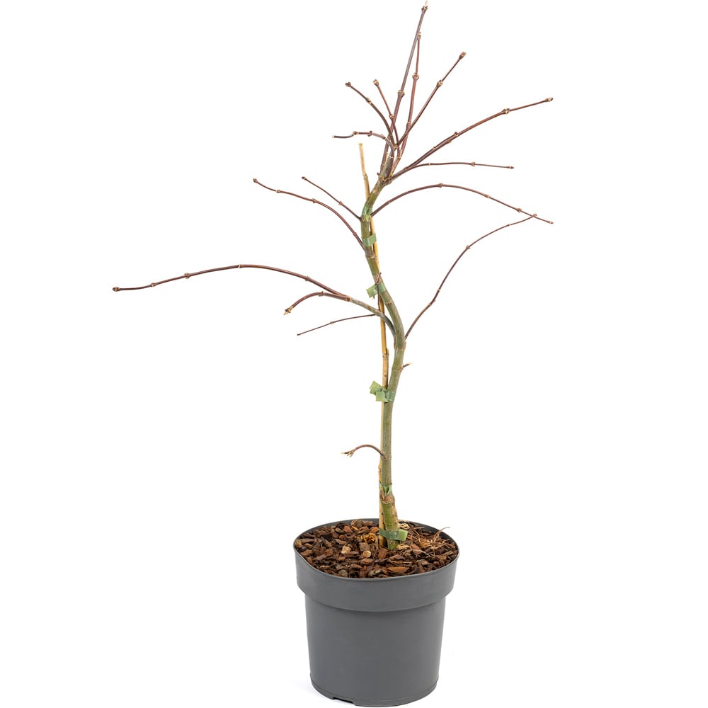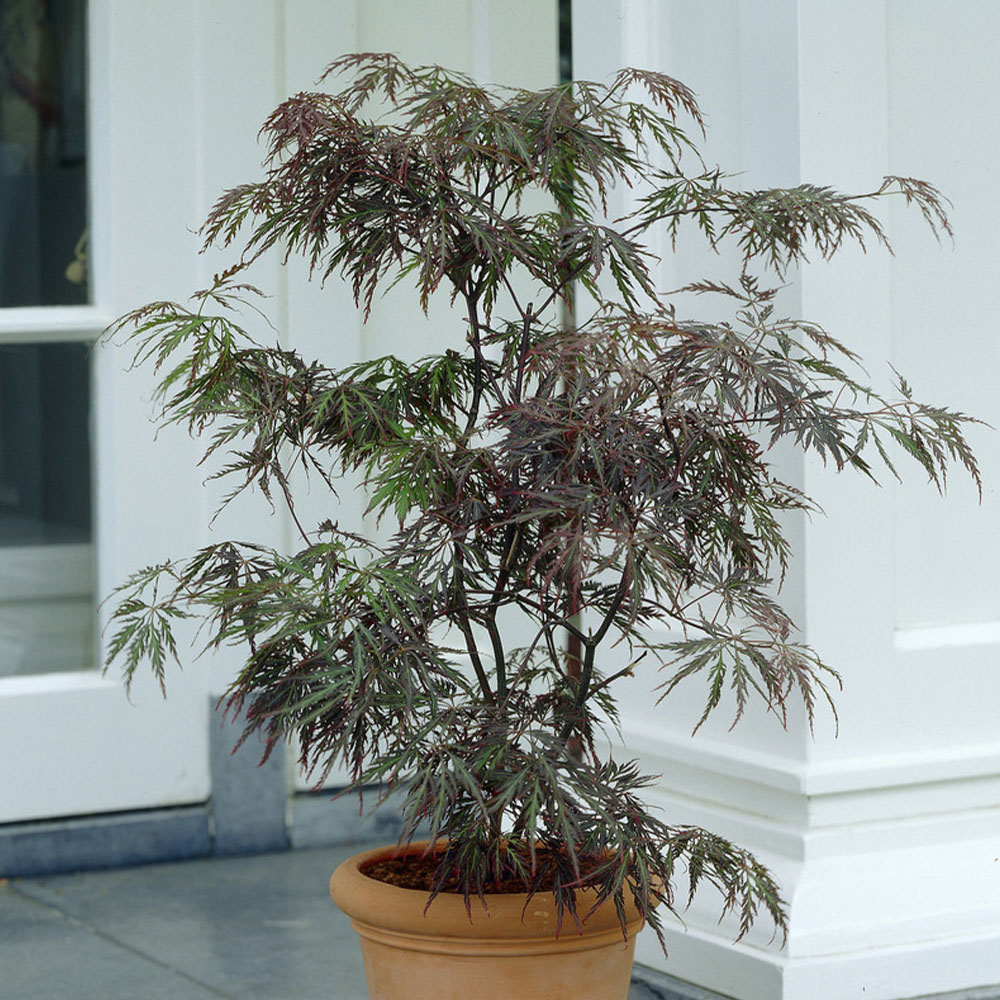 Enhance your garden with the Acer Palmatum Garnet, a slow-growing, spreading tree prized for its elegant form and captivating foliage. This compact variety is perfectly suited to smaller gardens, patios, or large containers, thriving happily for up to a decade in a pot. Its feathery leaves unfurl in spring, showcasing a vibrant burgundy red that deepens throughout the summer before transforming into autumnal reds. A truly versatile plant, it offers year-round interest. Supplied as an established plant in a three-litre pot, ready for planting (February-November, avoiding waterlogged or frozen ground), or potting. Please note that the height of the plant will vary seasonally; images are for illustrative purposes only. The overall mature dimensions are approximately 150cm high and 100cm wide. (Note: heights include the pot). Dormant in winter (November-March), expect leafless periods during this time.