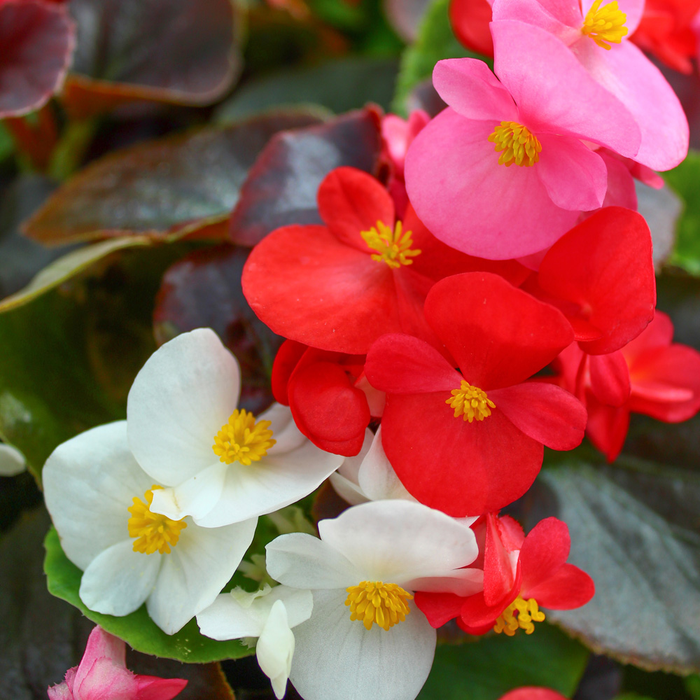 Bring vibrant summer colour to your garden with our Multicolour Begonia Sahara Pro Plus Plug Plants. These aren't your average begonias; expect a dazzling display of radiant reds, soft pinks, and pristine whites, each bloom perfectly accented by a rich yellow centre. The lush bronze and green foliage provides a stunning backdrop to the abundant flowers, creating a captivating tapestry of colour from early summer to late autumn. These begonias are remarkably resilient, thriving even in unpredictable British weather. Whether planted in borders, pots, or flowerbeds, they'll effortlessly brighten any space. This pack contains 40 pro+ plug plants, ready for you to nurture and grow before planting out. Transform your garden with this breathtaking summer spectacle.
