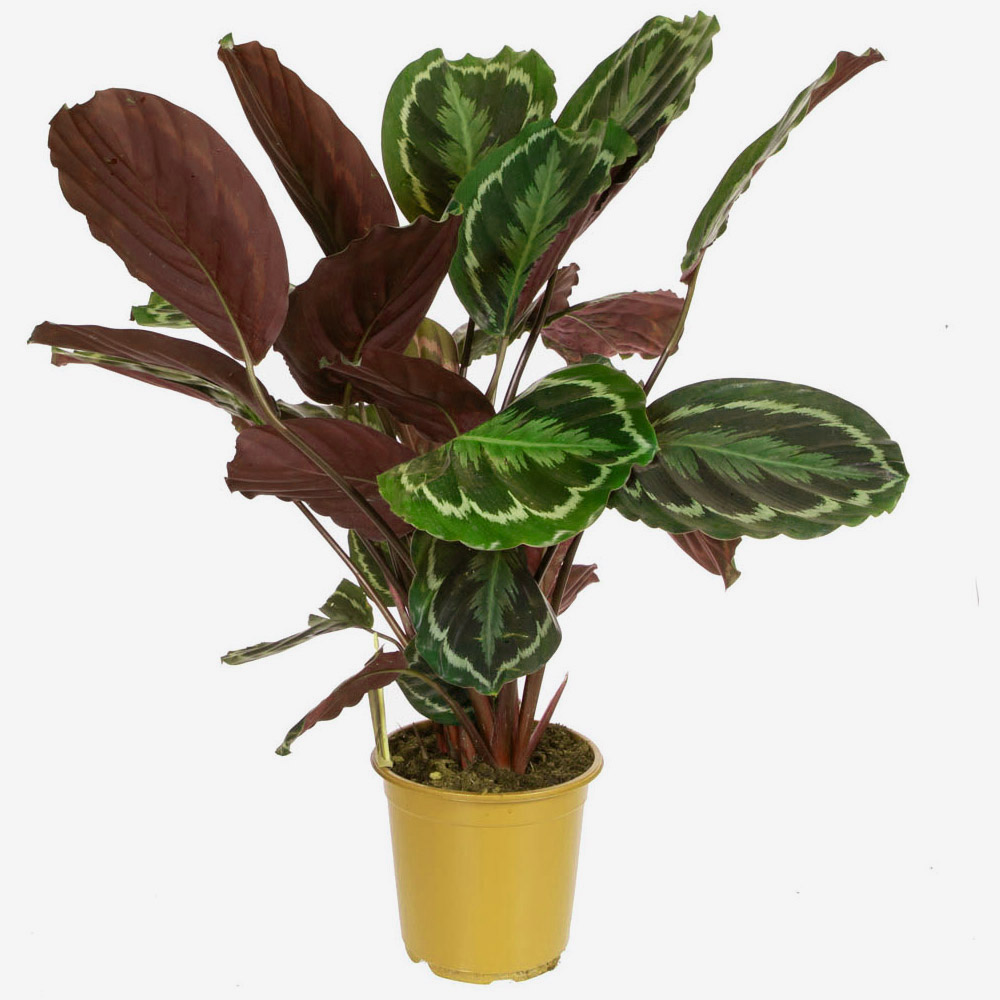 Bring the exotic allure of the tropics into your home with the Calathea Medallion. Its show-stopping leaves, uniquely round and patterned in a striking two-tone green above and rich purple below, are a true marvel. This vibrant plant will instantly transform any warm, humid room, creating a captivating focal point. Arriving in a 17cm pot, it will gracefully mature to a height and spread of 60cm (2ft), adding a touch of the extraordinary to your interior.