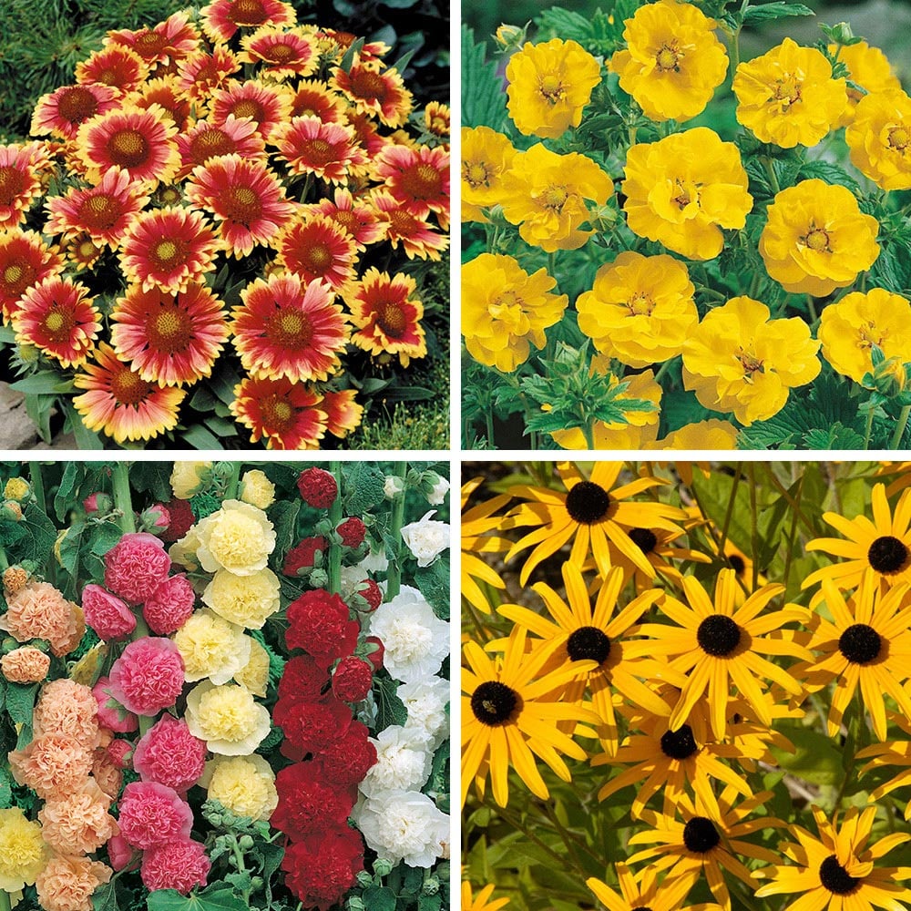 Transform your outdoor space with this vibrant Cottage Garden Assorted Perennial Collection. Twelve diverse varieties, bursting with colour and vigour, deliver a stunning display from late May to October, adding colour, impact and structure to your garden all spring and summer long. Expect a captivating blend of blooms, attracting beneficial insects like butterflies, ladybirds, and honeybees – a haven for nature enthusiasts and vegetable gardeners alike. These hardy perennials are perfect for novice gardeners or anyone seeking reliable, long-lasting beauty. Versatile enough for beds, borders, pots, or containers, many varieties also make exquisite cut flowers that can be brought indoors too. Each plant will naturally die back in autumn, returning bigger and better the following spring. The collection typically includes (but is not limited to): Achillea 'Summer Berries', Delphinium 'Fountain Mix', Digitalis (Foxglove) 'Dalmation Mixed', Hollyhocks 'Chaters Double Mixed', Coreopsis 'Early Sunrise', Gaillardia 'Mesa Mix', Geum 'Lady Stratheden', Aquilegia 'Mrs Scott Elliot', Alchemilla mollis, Campanula 'Blue Bells', Verbena bonariensis, and Rudbeckia 'Goldsturm'. Upon arrival, gently mist or soak the plugs for an hour to rehydrate; they may appear slightly dry or yellow after transit. Pot them using a quality multi-purpose compost and 7-9cm pots. Water thoroughly initially, then only when the top compost dries. Grow on a bright windowsill or greenhouse for three to four weeks before transplanting into containers or flowerbeds. For direct planting, prepare the soil well once frost risk has passed, removing weeds and enriching the soil with compost or well-rotted manure.