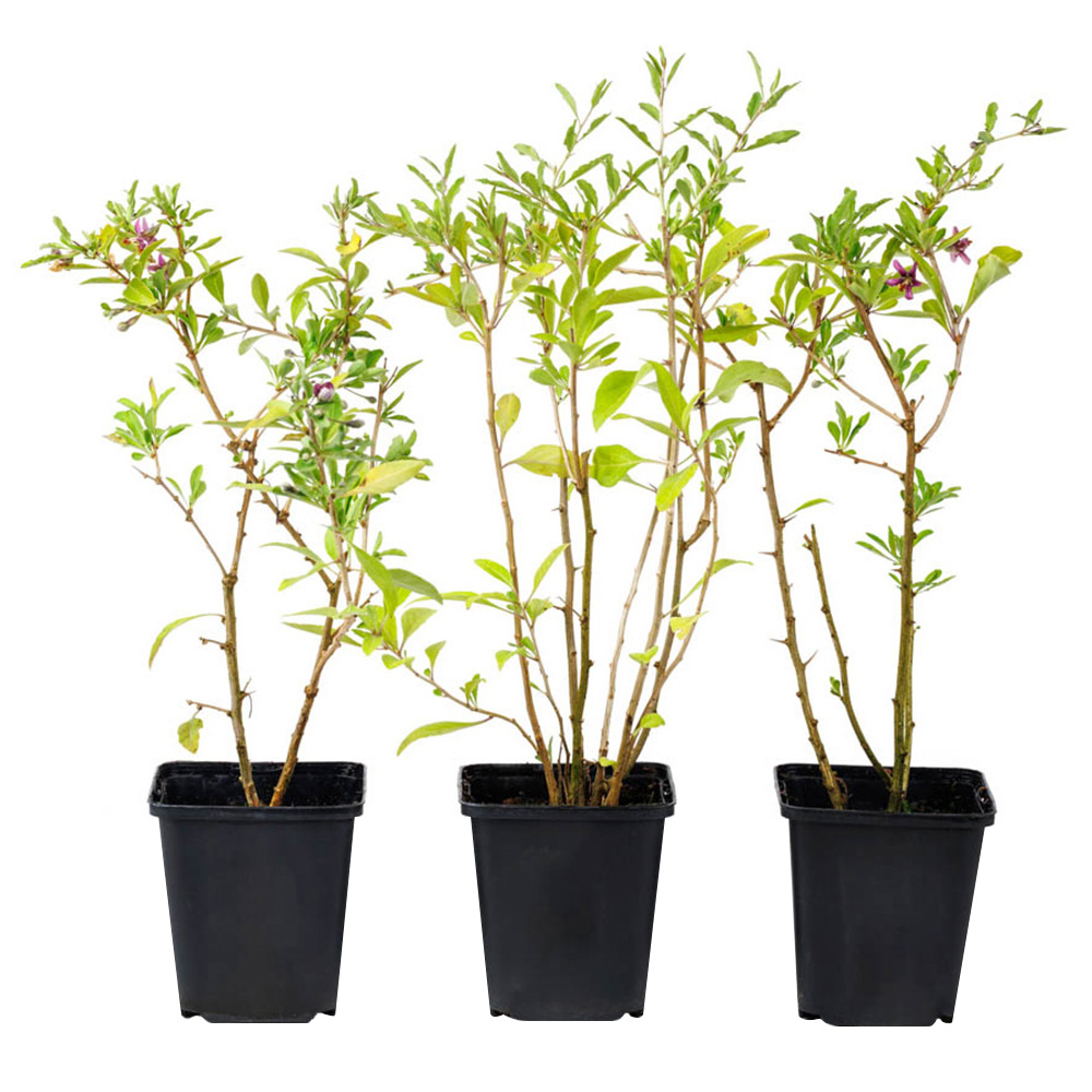 Enjoy the taste of nature with the Lycium Barb Sweet Lifeberry Goji Berry Plant. This high-yielding variety, renowned for its exceptionally sweet berries, thrives in various settings, from patio pots to gardens. The plant produces an abundance of healthy, delicious fruit, packed with antioxidants, vitamins, and minerals, perfect for culinary creations such as sauces, puddings, and desserts, or enjoyed as a healthy snack, either fresh from the bush or dried. Its attractive berries and vibrant foliage add a touch of beauty to any space. Supplied as three plants in 9cm pots, ready for planting from March to May, they'll flower from June to July, with a harvest from August to September. Expect a mature size of 160cm in height and width. Note that plant height on delivery will vary depending on the time of year; the stated height includes the pot.