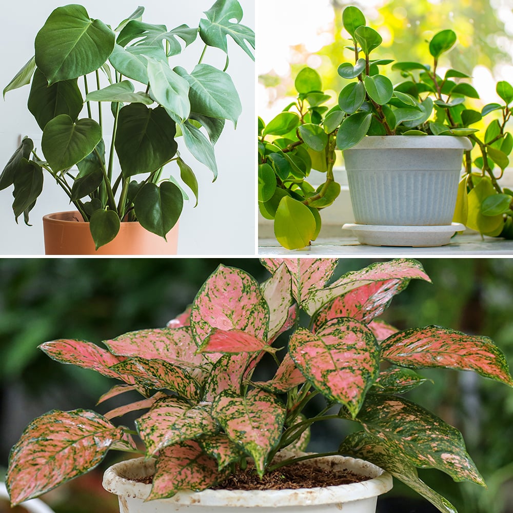 Bring a touch of the outdoors in with this delightful trio of miniature houseplants. This collection features three established plants, each in a 6cm pot, offering a charming blend of textures and colours. The Swiss Cheese Plant, with its distinctive rounded green leaves, provides an upright, swaying presence. Complementing this is the Aglaonema Red Valentine, boasting glossy rose-pink leaves accented with dark green markings. Finally, the trailing Jade Plant adds a cascading touch of light green foliage, creating a miniature, verdant display. Plant heights may vary, but these beauties can eventually reach up to 90cm in height and 50cm in width, depending on the variety. Low maintenance and visually appealing, they're the perfect addition to any home.