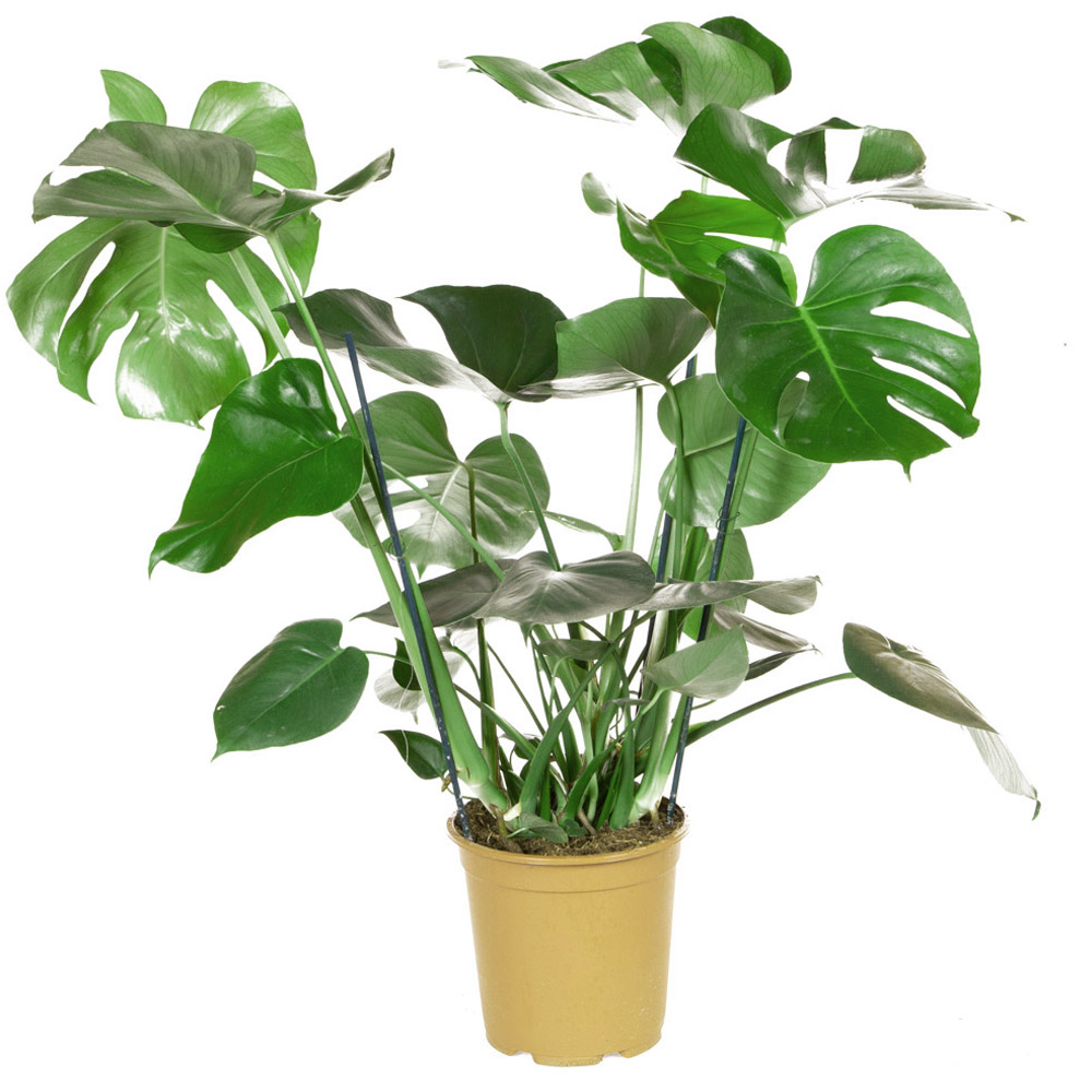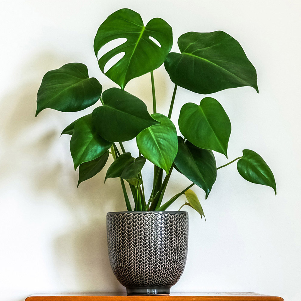 If there is one houseplant that has inspired generation after generation of indoor gardeners, then it has to be the ever-popular and easy-to-grow Swiss cheese plant, Monstera Deliciosa. With glossy, rich green leaves with irregular holes, plants will trail gently over their pot if left untrained or can be treated as a climber and tied to a support. The glossy, tropical leaves of the monkey leaf are what make this plant a star, easily adding a lush, exotic feel to any room. It's fascinating to watch the young leaves as they emerge tightly furled, growing longer each day before opening fully. Young leaves are solid, but as the plant matures, they begin to develop the characteristic holes. Naturally a lazy climber, your plant will enjoy the support of a moss pole, not supplied, where you can push its aerial roots into the moss as they develop, helping to support it as it grows. A native of tropical rainforests, Monstera is a houseplant that's easy to keep happy. It is recommended that you place it in bright but not direct sunlight indoors and mist the leaves regularly to provide humidity. They love a bit of a leaf wipe now and again to remove dust and restore that glossy sheen. Supplied as an established plant in a 4L pot, approx. 60-80cm tall. As with all houseplants, keep away from children and pets and take care when handling. Please note that the decorative pot is not included.