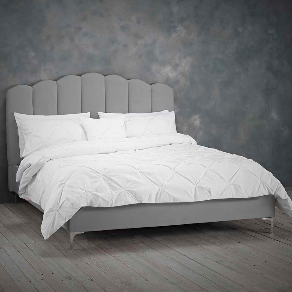 Indulge in the opulence of the Willow Standard King Size Silver Bed Frame. Its exquisite deep fluted petal design, elegantly upholstered in luxurious velvet, creates a truly comfortable and sophisticated feel. A perfect statement piece for any bedroom, this bed frame promises both style and comfort.