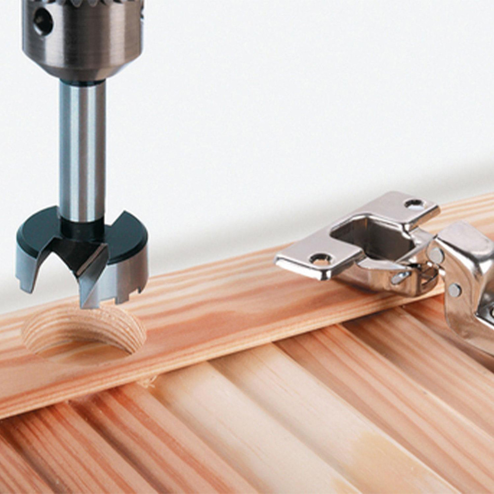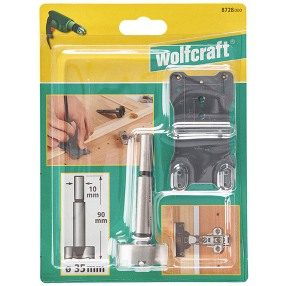 Drill precise hinge holes with ease using the Wolfcraft Forstner Drill Bit Set two piece, a reliable solution for clean, accurate drilling in softwood and chipboard. The set includes a 35mm Forstner drill bit with an 8mm round shank, ideal for restricted-depth edge drilling. Its self-cutting centring tip ensures pinpoint accuracy and stable free-hand guidance, while the two sharp main cutting edges deliver fast progress with minimal heat build-up. The special cutting geometry makes drilling effortless, even in coated wood or plastic. Also included is a plastic marking template for accurately positioning cup hinges and connecting fittings for both 26mm and 35mm sizes. Whether you're installing cabinet doors or assembling furniture, this set ensures professional results every time.