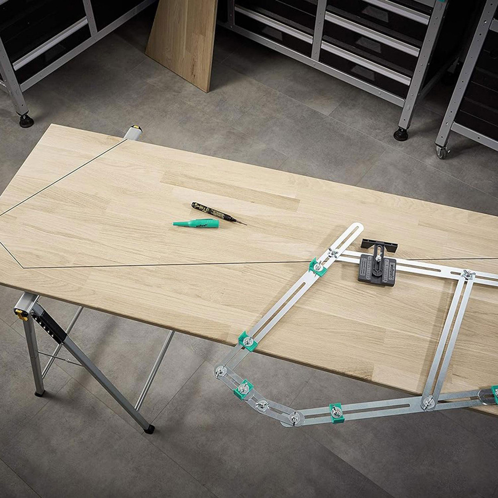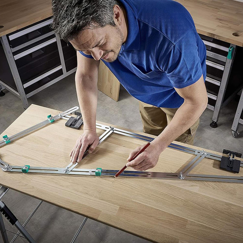 Tackle tricky staircases like a pro with the Wolfcraft Stair Gauge Set (39 pieces), your ultimate companion for precise step measurement and flawless installation. Whether you are renovating a classic wooden staircase or navigating the curves of a spiral one, this clever toolset makes complex gauging simple. It combines the flexibility of a stair spider with the accuracy of a bevel gauge, featuring galvanised steel rails, a flexible chain element for curved steps, and integrated wedges and adapters to account for expansion joints and material allowances. High-quality bolts with wing nuts ensure secure positioning, so you can confidently transfer measurements to your workpiece without errors. Perfect for ambitious DIYers, this set brings precision and ease to one of the most challenging home improvement tasks. The set includes: 13 galvanised steel rails, two galvanised steel rails, 15 screws with wing nuts and washers, a flexible chain element, six spacing guides for expansion joints and two protrusion gauges.