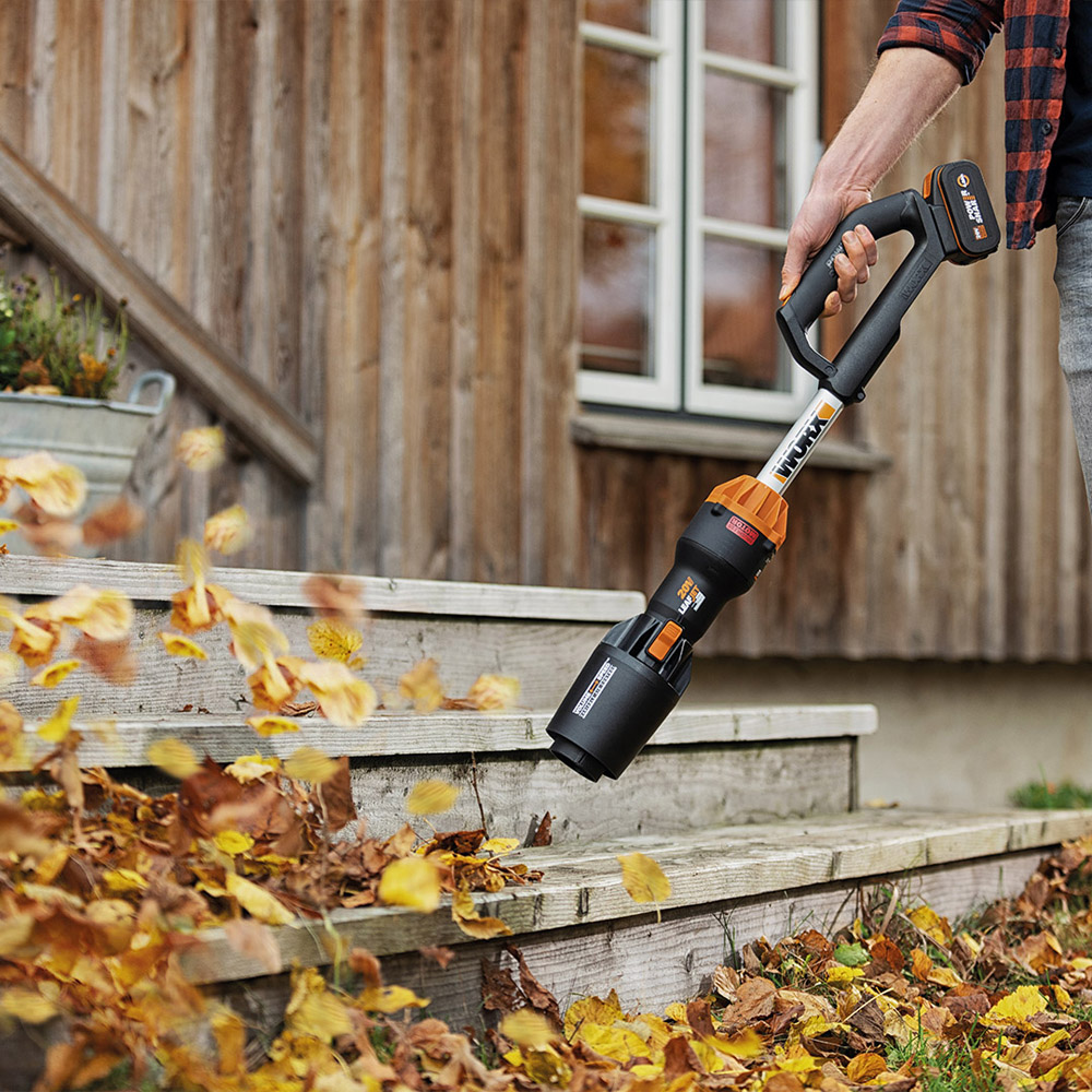 Experience the impressive power of the Worx 20V WG543E LeafJet Blower, engineered for ultimate performance in a lightweight design. Weighing a mere 1.7kg, this cordless blower delivers a robust 209km/h airspeed, providing both force and broad coverage. The innovative Sonic Turbine Tech, combined with air amplifier technology, maximises air intake and output for unparalleled efficiency. Its slim profile and user-friendly operation make it a standout choice for effortlessly maintaining even larger lawns. Equipped with a brushless motor, the LeafJet offers enhanced efficiency and extended runtime compared to traditional blowers.