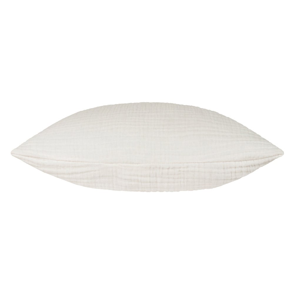 Add a touch of understated elegance to your living space with this charming white muslin cotton cushion. Its four-layer construction, featuring subtly ribbed fabric, creates a soft and lightweight feel. Finished with simple knife edging and a hidden zip closure, this cushion offers a light, airy addition to any modern or contemporary home. The uncomplicated design makes it the perfect accent for a space prioritizing simple yet sophisticated style.