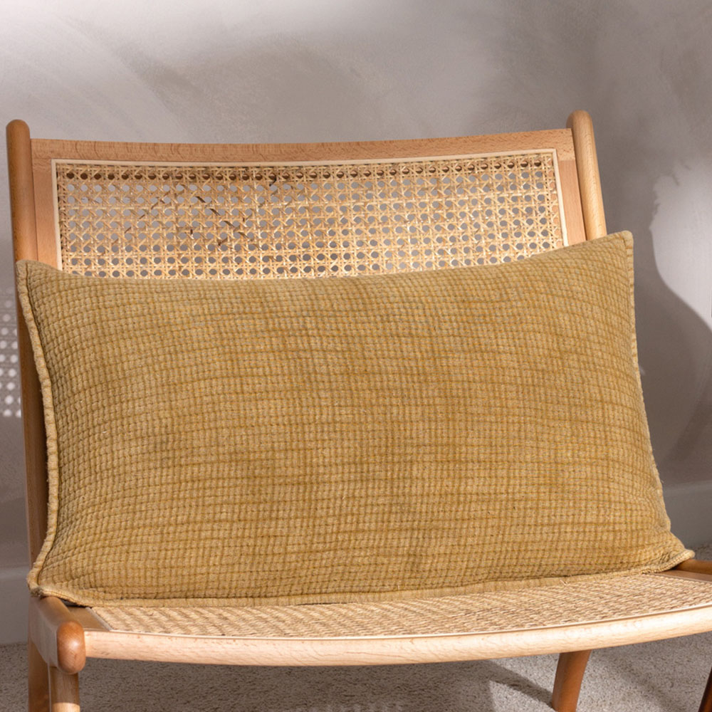 Indulge in ultimate comfort with the Yard Ribble Honey Acid Wash Cushion. This reversible cushion, crafted from ultra-soft, acid-washed ribbed cotton, brings a touch of modern, relaxed style to any room. The twin-stitched piped edge and hidden zip closure add a refined finish to its understated lived-in look. Perfect for elevating your lounging experience.