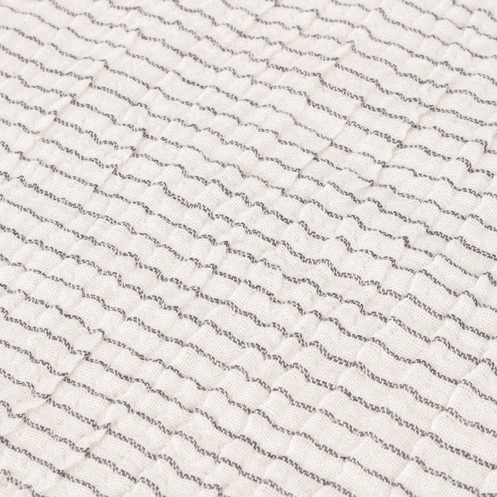 Experience the perfect blend of comfort and style with the Skye Sherpa Stripe Throw. This 130 x 180cm throw features a lightweight, elegant double-layer muslin cotton front accented with pinstripe yarn. The contrasting reverse boasts ultra-soft Sherpa fleece for a luxuriously cosy feel. A sophisticated addition to any space.