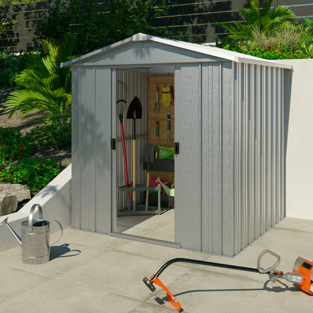 Yardmaster Titanium Silver Metal Apex Storage Shed 6 x 8ft