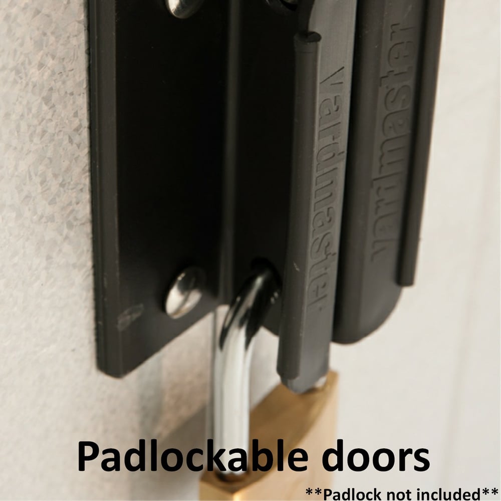 • Includes padlockable double sliding doors with weatherseal
